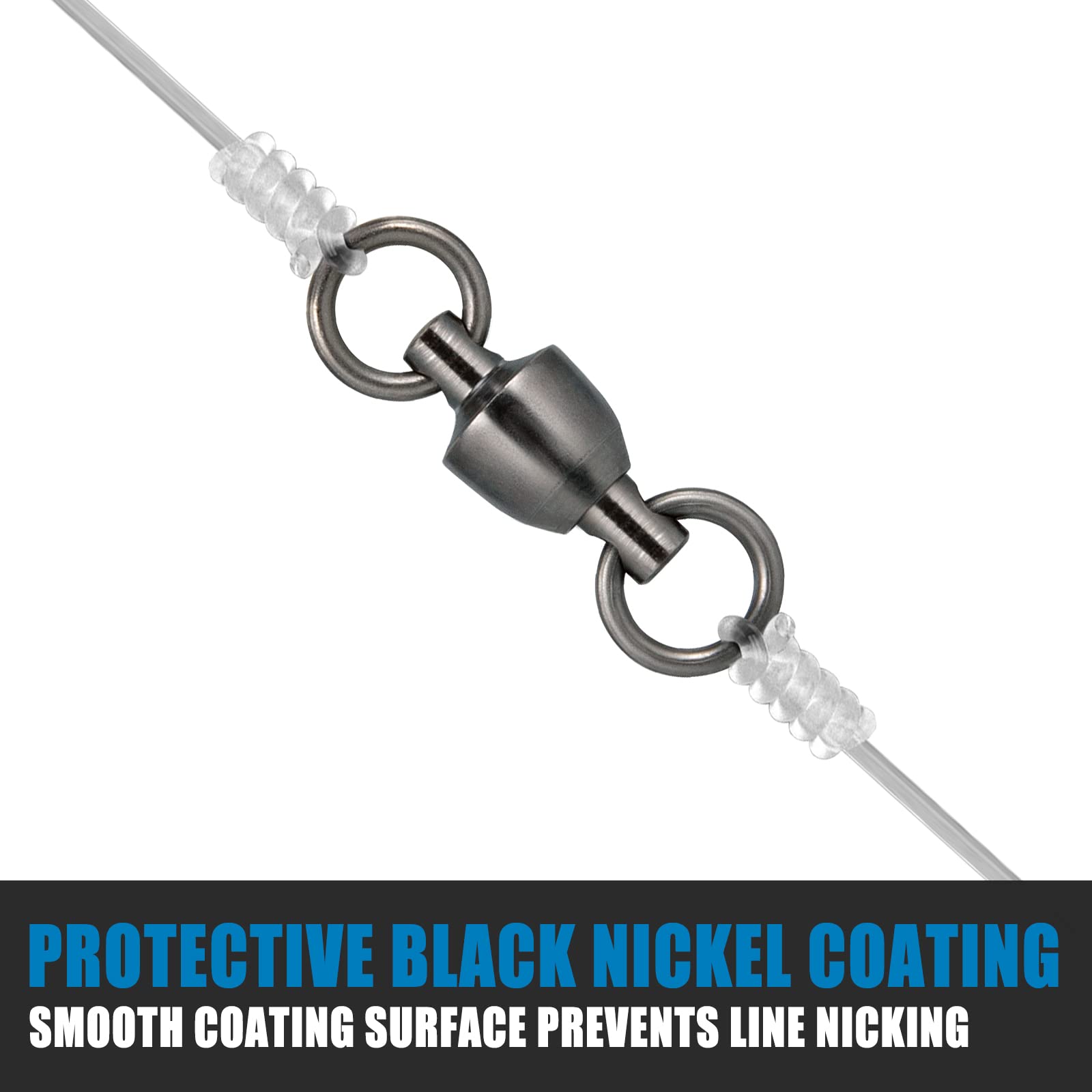 Dr.Fish 20 Pack Fishing Swivels, Ball Bearing Swivels Fishing Tackles, Saltwater Swivels Copper Stainless Steel Solid Rings Black Nickel Coating Barrel Swivels Heavy Duty Catfish Swivel Size 8