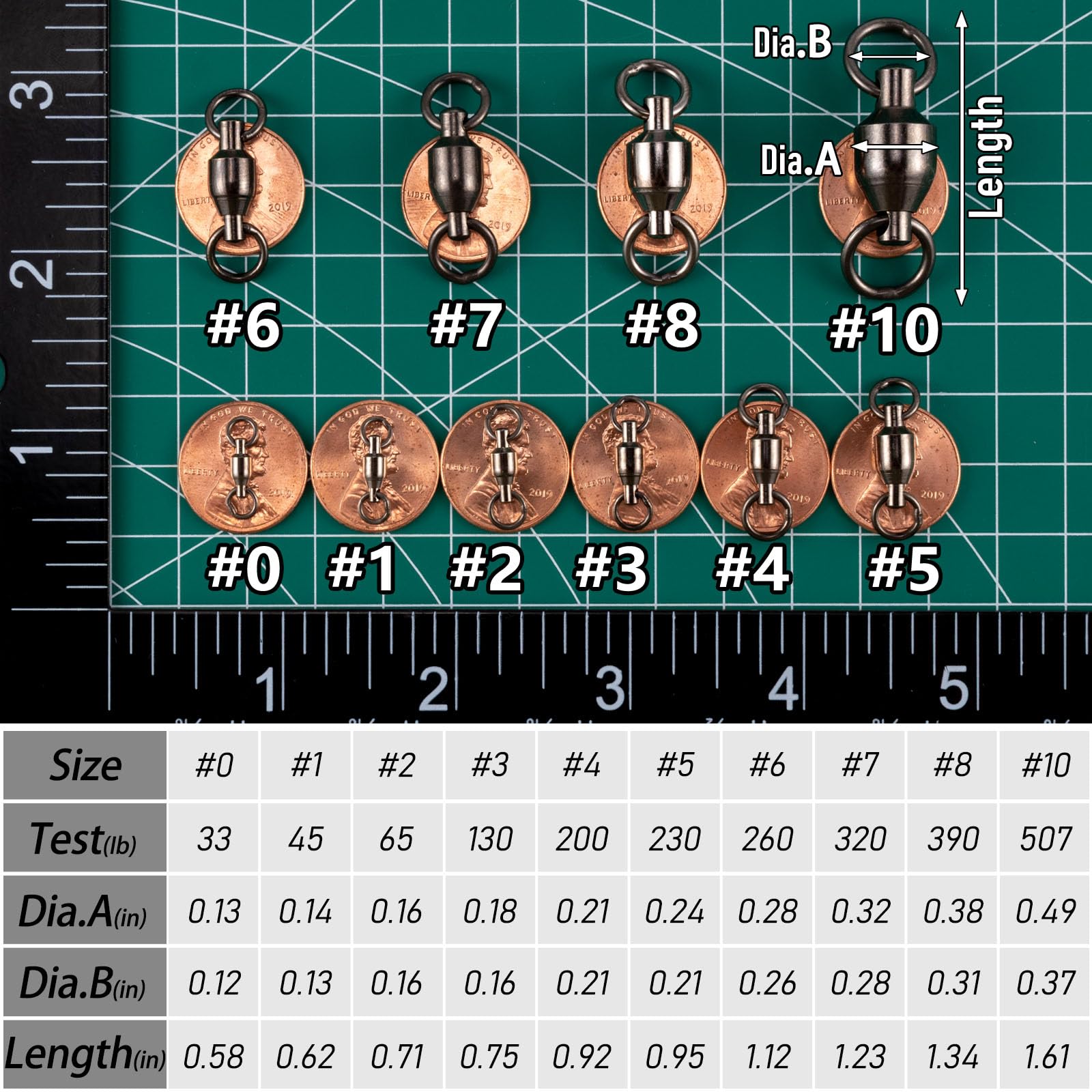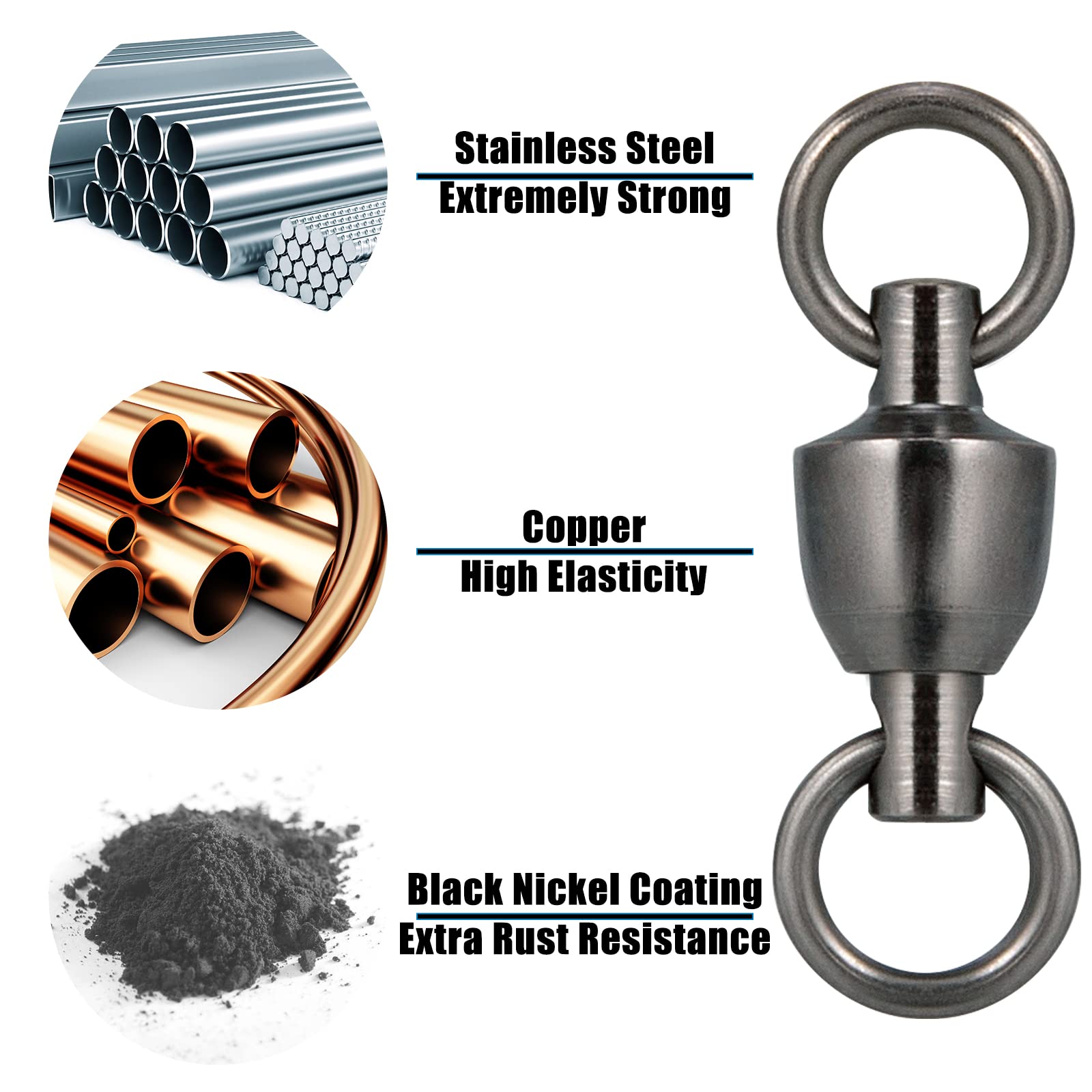 Details: STRONG. Swivel made of Copper Body with stainless steel welding ring. SMOOTH. Loaded with high-class stainless steel balls in the swivel housing, provide maximum protection against twisted and tangled lines. RELIABLE. Excellent corrosion resistance, abrasion resistance and shock resistance. Approved for using in saltwater, high speed trolling, jigging, offshore fishing. Small size would work great for freshwater like bass fishing. Great for all kind of fishing and hunting, gardening, art purpose and any where need a spinning connectors.