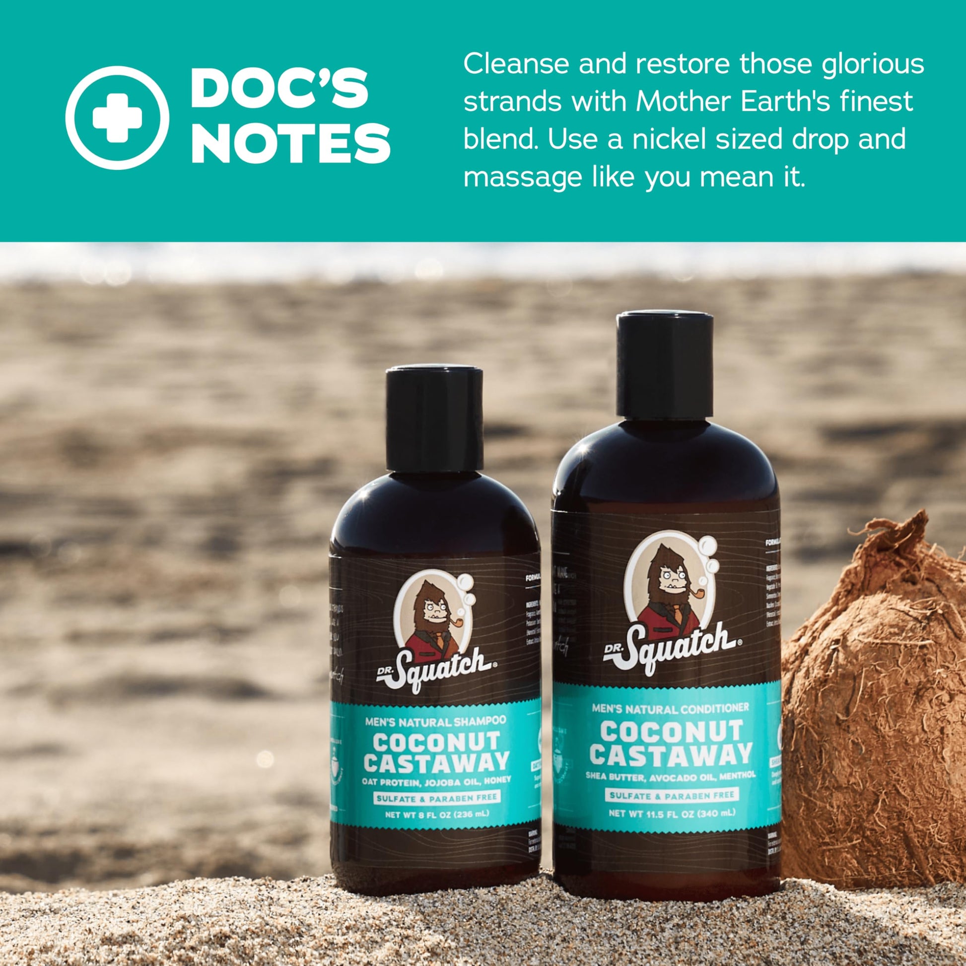 Dr. Squatch Coconut Castaway Men's Shampoo + Conditioner Hair Bundle - Keeps Hair Looking Full, Healthy, Hydrated