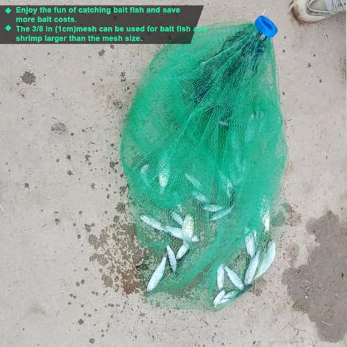 - 3/8’’ MESH: 3/8 mesh accommodates most bait species. Make capturing live bait easy and fun,provides significant savings in bait cost. The bottom of the net adopts each mesh bundle line, so that the net is evenly stressed, enhancing the durability of the net