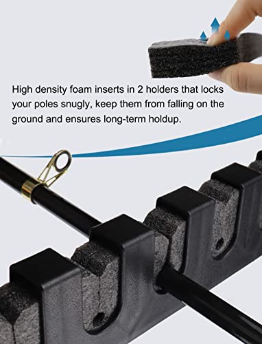 Ducurt Fishing Rod Rack Holders Wall-mounted Fish Pole Holder for Garage & Boat 6-Rod Storage Racks (Horizontal Black, 1 Pair)