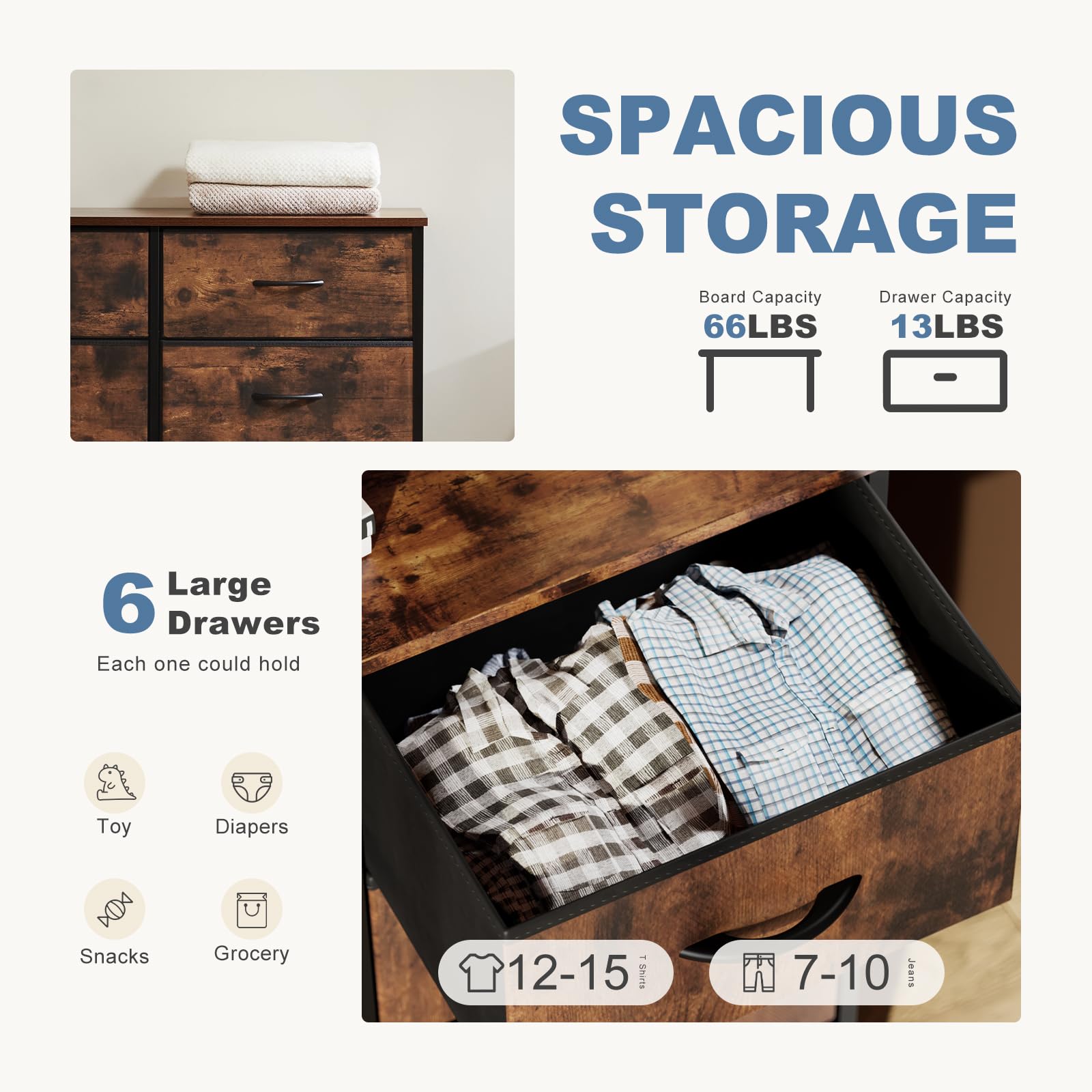 DUMOS TV Stand for Living Room Entertainment Center with 6 Fabric Drawers Dresser for Bedroom Storage Organizers Units, Brown