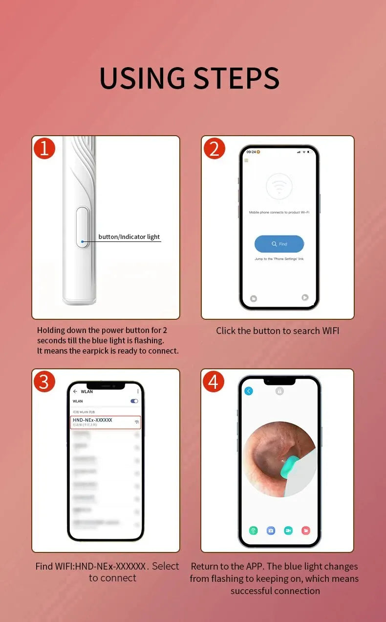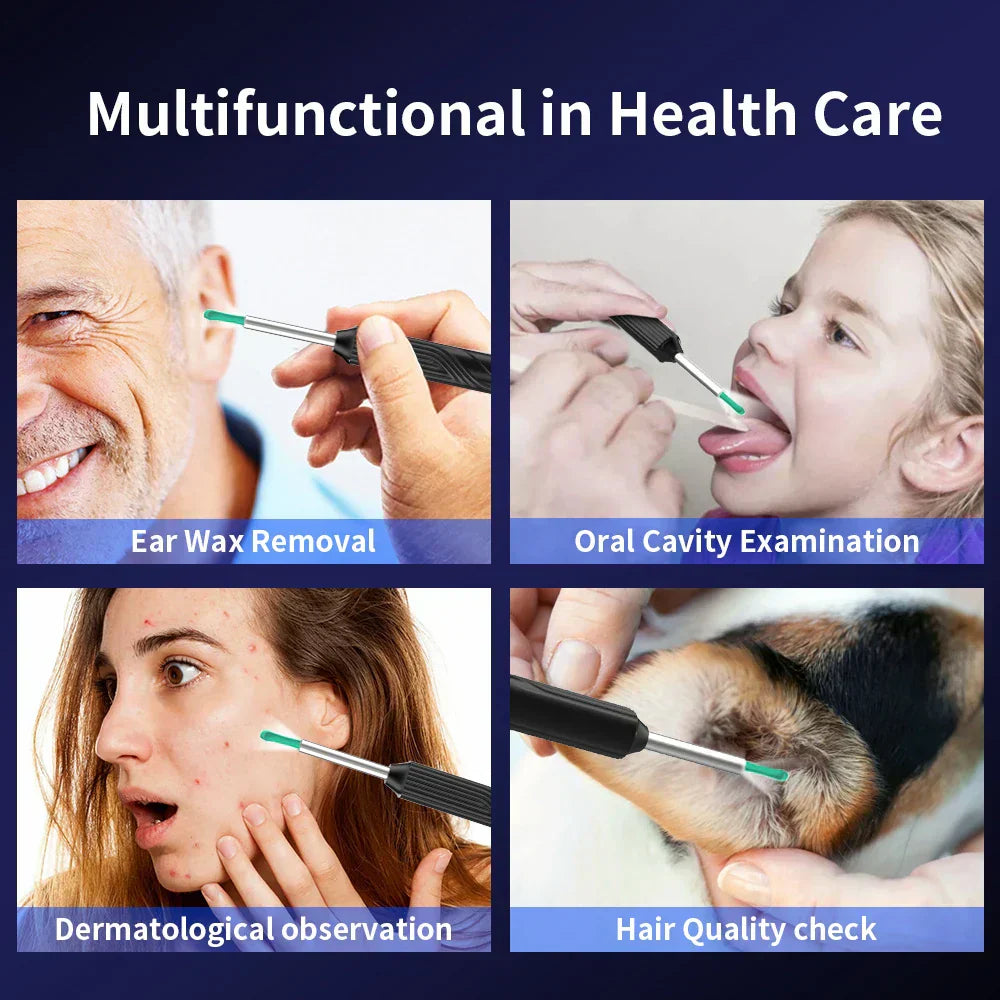 Clean your ears with precision and ease using our Earwax Remover Cleaning Tool with Mini Camera. The mini camera allows for a thorough cleaning, providing a safe and effective way to remove excess earwax. See the results for yourself with this professional and objective tool.