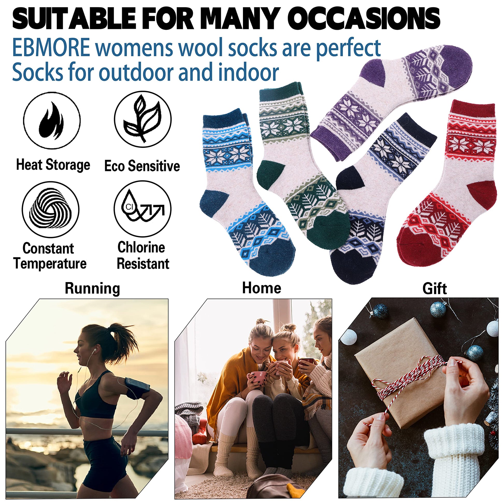 - MULTI FUNCTION : The high quality women wool thermal socks are suitable for different situation, you can wear them as winter socks, warm socks,thermal socks,hiking socks,office socks, school socks, heavy socks,fuzzy socks, outdoor socks, sport socks, indoor socks, home socks, work socks, crew socks, ragg socks, heavy duty socks, boot socks, Christmas socks in Spring, fall, winter season or in any cold weather or snow areas!