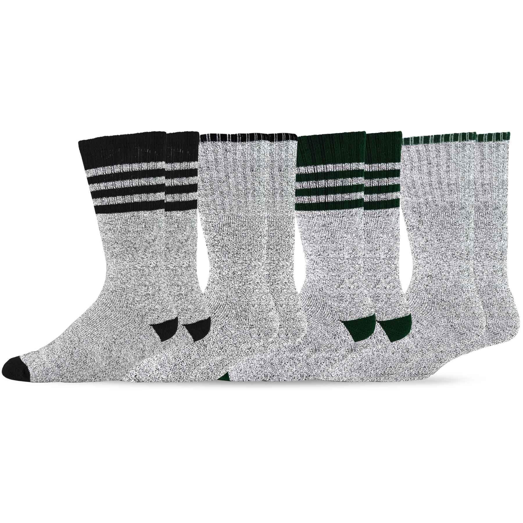 Eco Friendly Heavy Weight Recyled Cotton Winter Thermal Boot Socks 4 Pair (9-11, Stripe-Blk/Grn)