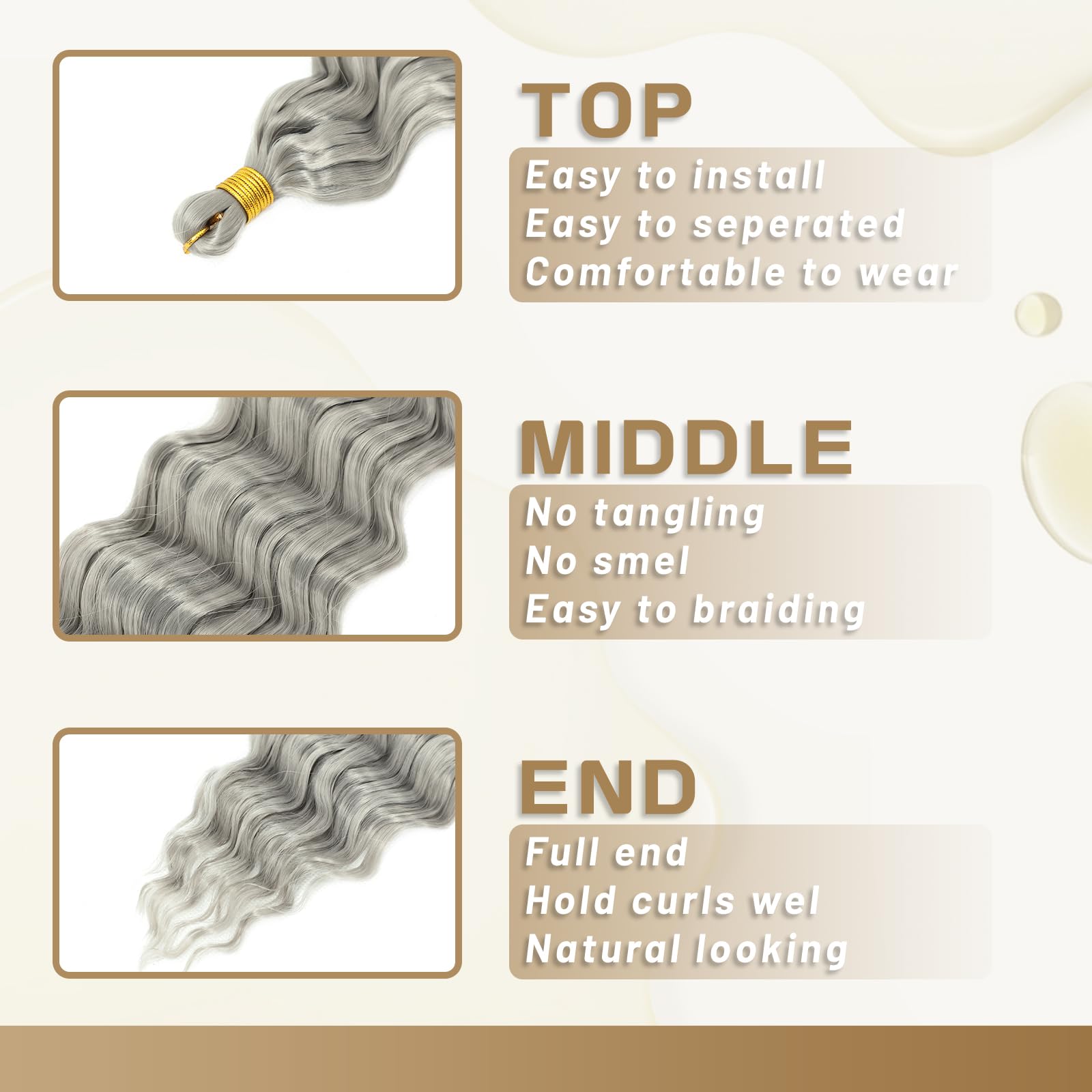 - Easy to Wear: our deep wave braiding hair is incredibly easy to wear, Just with a crochet needle, you can easily create a variety of hairstyles to suit any occasion, from casual to glamorous. Such as boho box braids, goddess box braids, knotless box braids, goddess locs and other curly crochet hair styles.