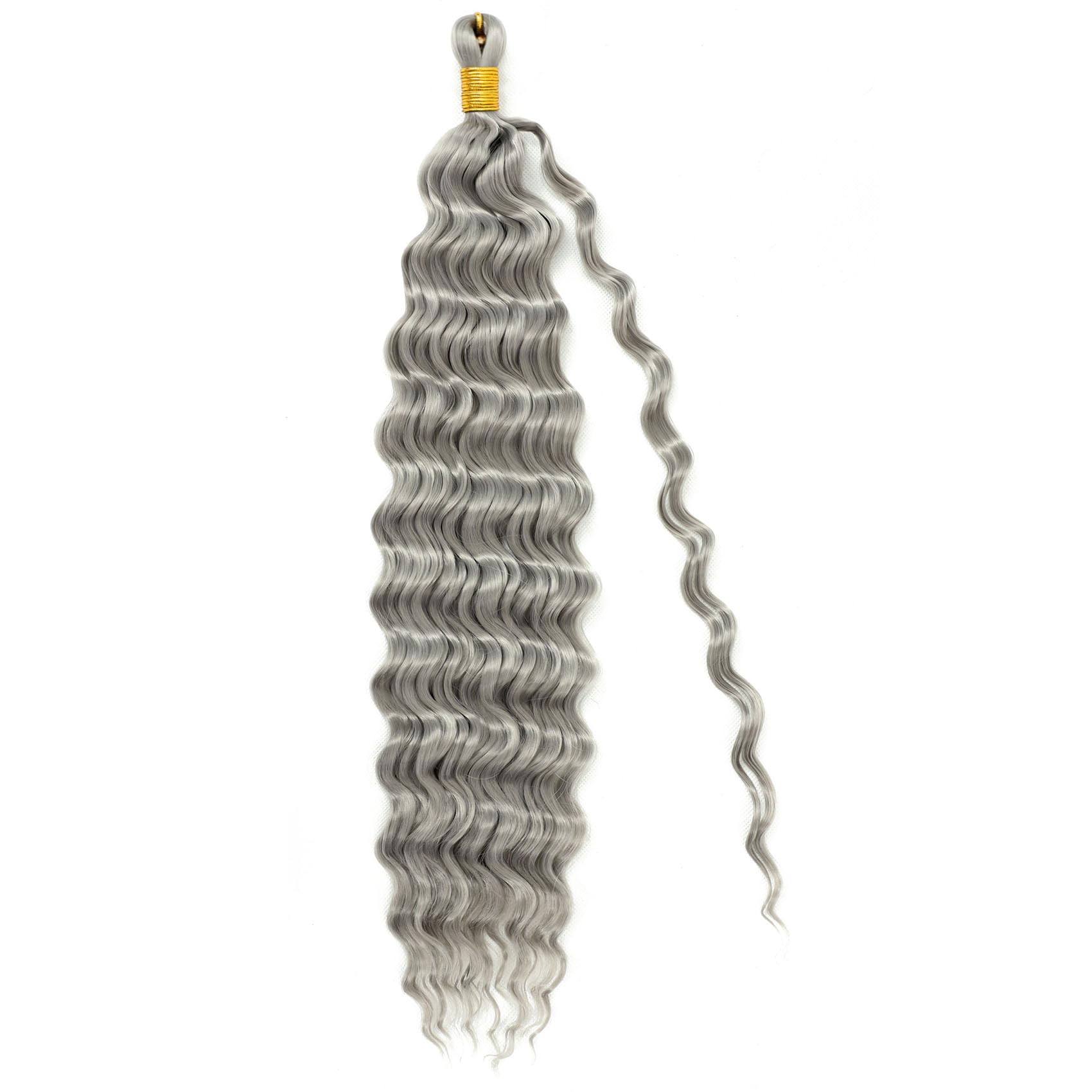 Eerya Long Curly Braiding Hair 18 Inch 2 Packs Grey Ocean Wave Crochet Hair for Black Women Deep Wave Braiding Hair for Boho Braids (18 inch, Grey)