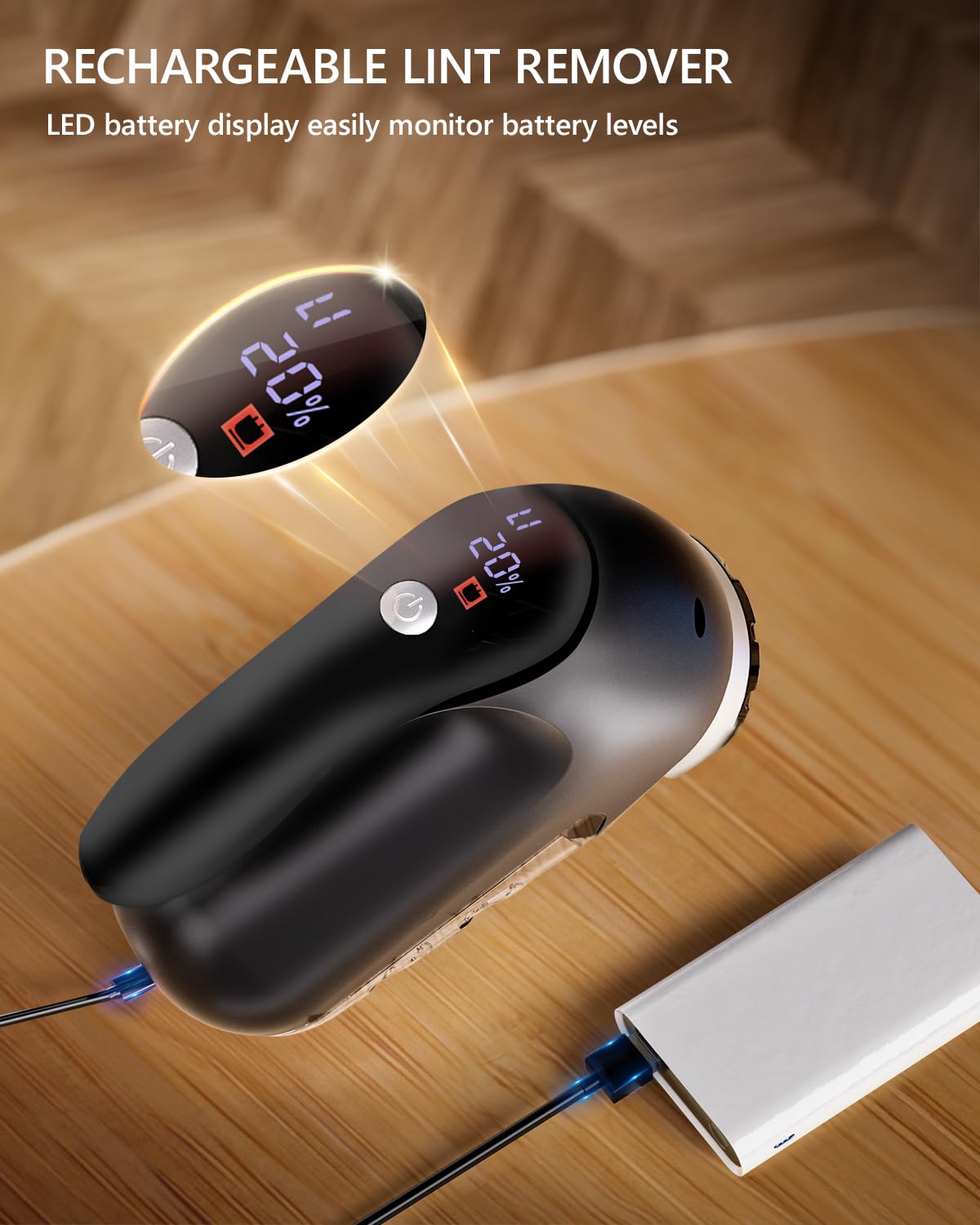 - UPDATED FEATURES:This lint remover has been upgraded from our original hot selling model. The exterior has been upgraded with a premium LED digital display; 2-speed adjustment has been added to the features; the head has been upgraded from 3-leaves blade to 6-leaves blade; and charging has been upgraded from adapter or battery power to USB charging. A full charge can be used cordlessly for 1.5-2 hours.