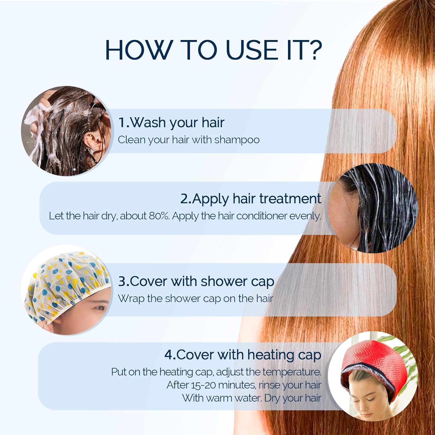 - Inside embedded waterproof plastic film provides better moisture and vapor absorption to improve hair split ends. This allows you to easily get your silky smooth hair back.