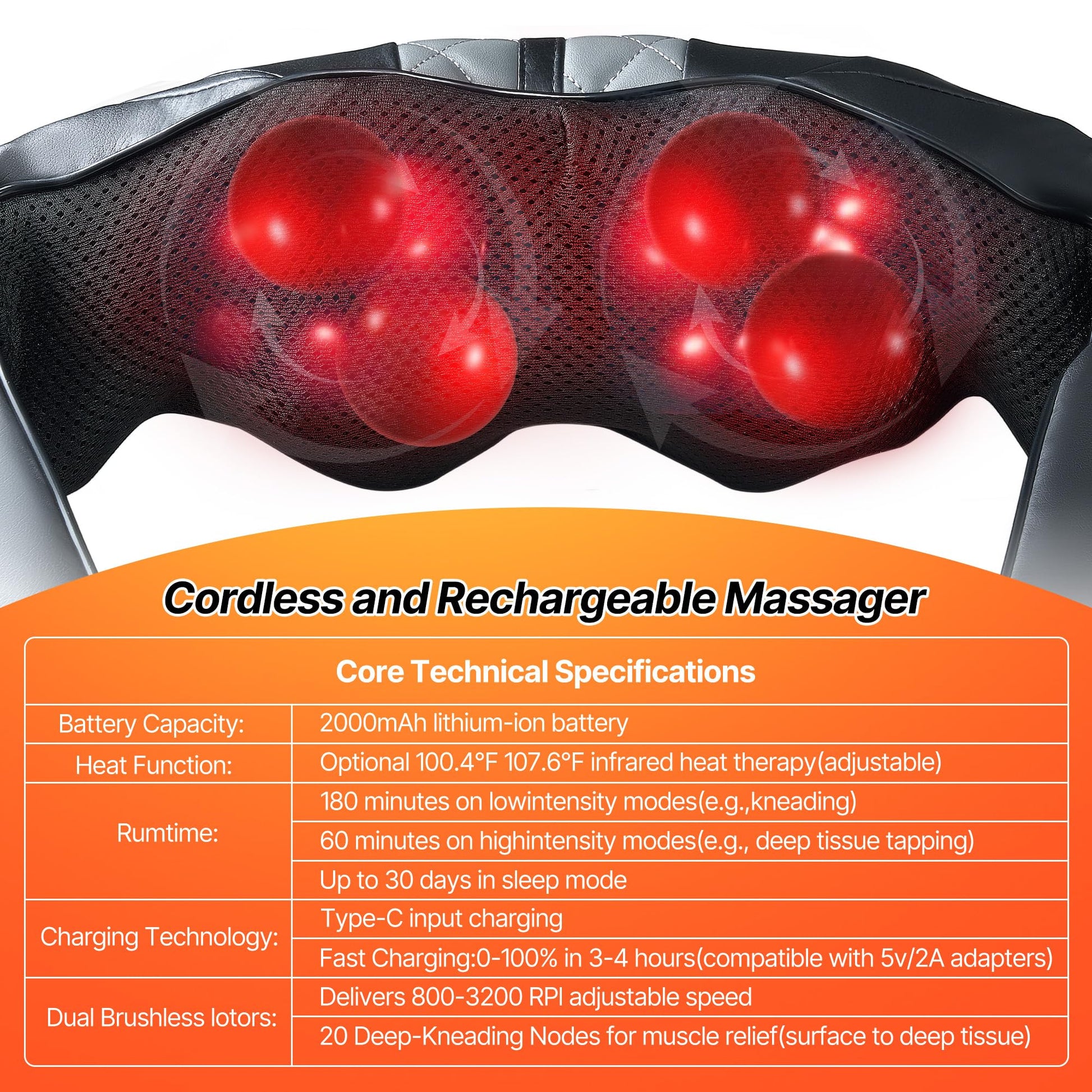 - 【Deep Shiatsu Relief】- 20 rotating kneading nodes deliver a professional-style massage, melting tension, easing neck stiffness, and reducing muscle pain after long days—feels like human hands
