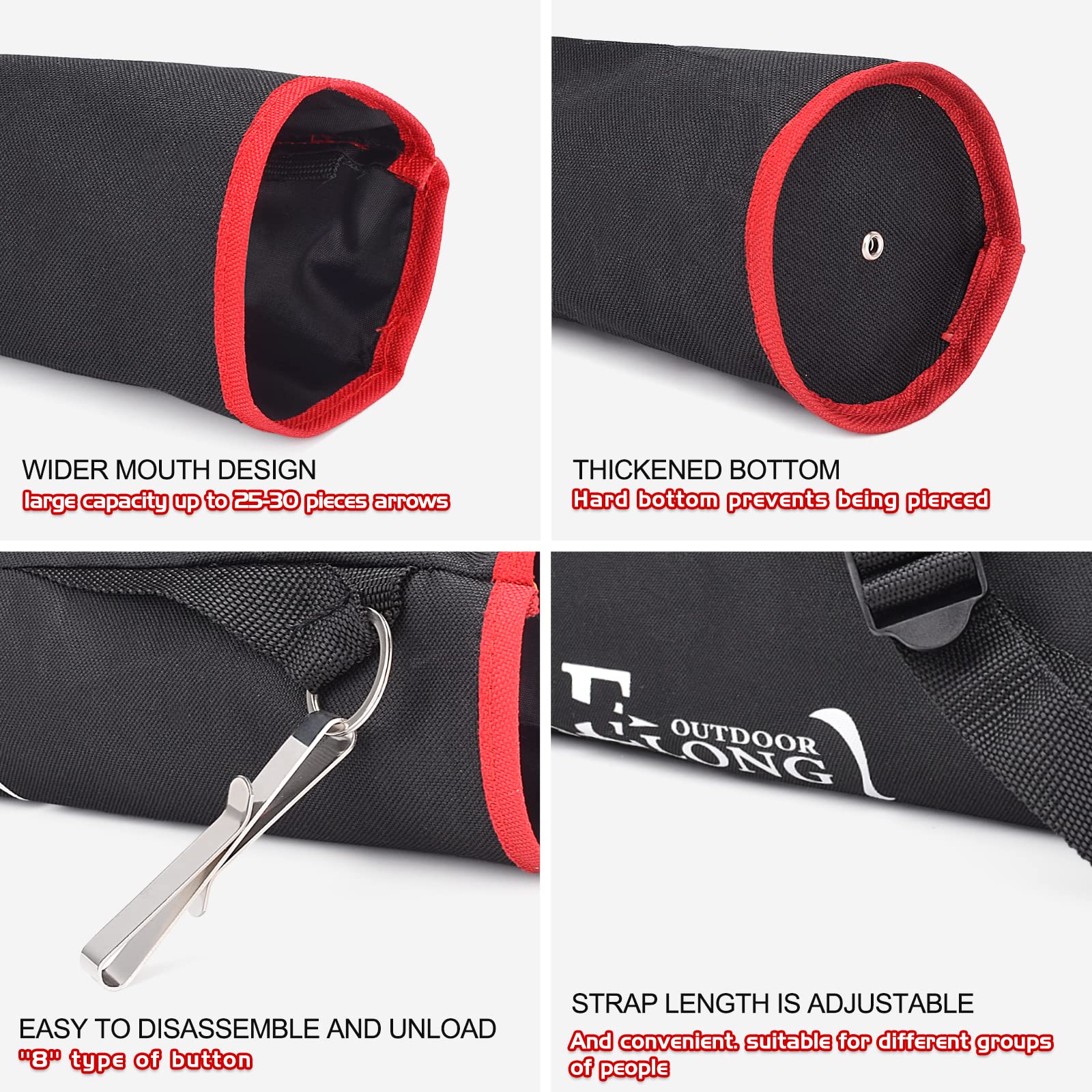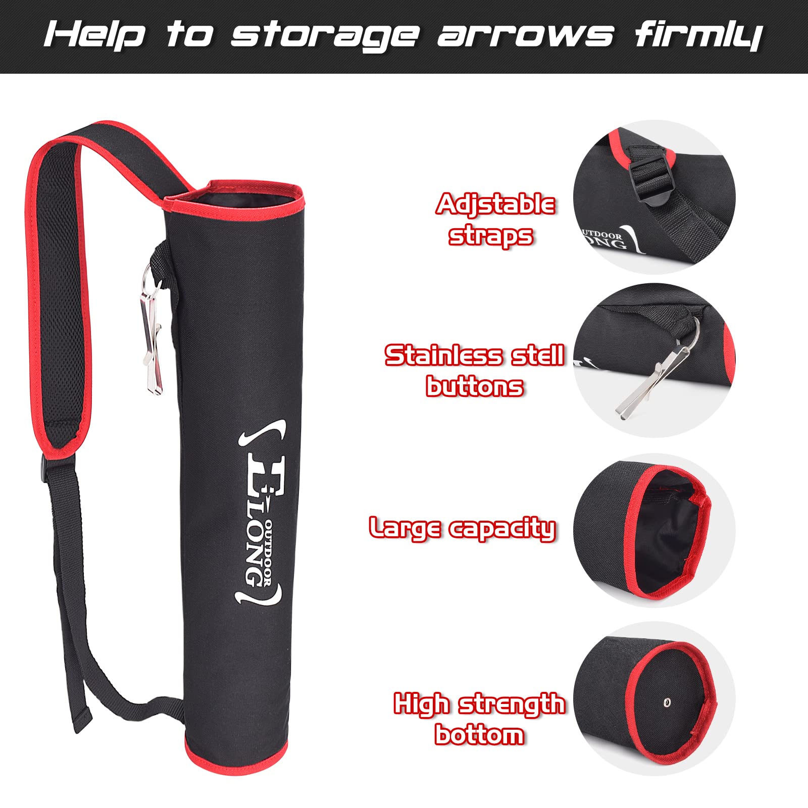 - Adjustable - The straps of ELONG Arrow Quiver can easily be adjusted from 15' to about 34' to fit Youth and Adults.