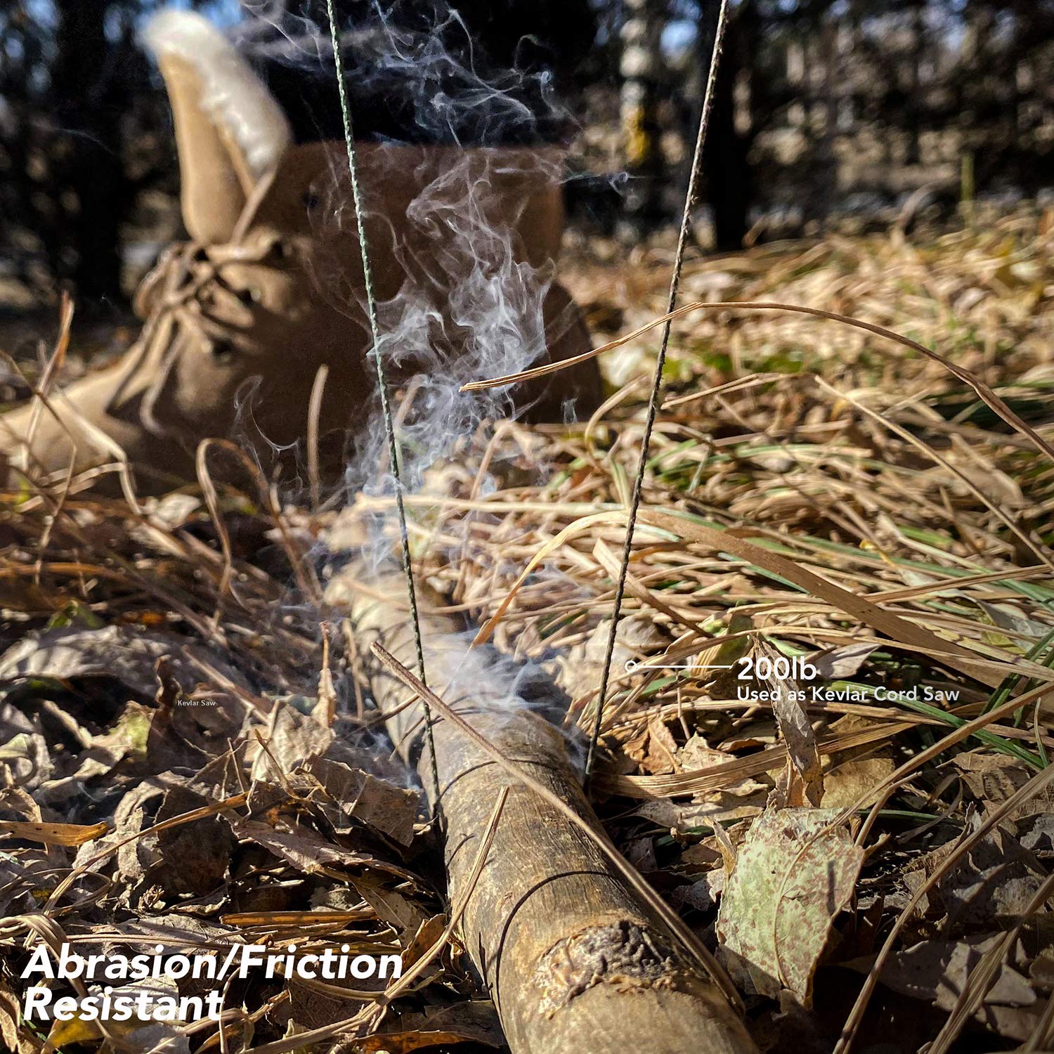 - Reliable Survival Cord in the Wild! Highly abrasion/friction resistant, Kevlar cord is used as highly efficient cords friction saw to help escape from plastic zip ties, ropes, or tapes, and cut through various materials including wood, plastic tubes, nylon, and polyesters to complete projects. In the binding, fastening, and wrapping jobs, Kevlar line/cord largely reduces risks of unexpected snaps, providing assured protection especially when in direct contact with sharp edges.