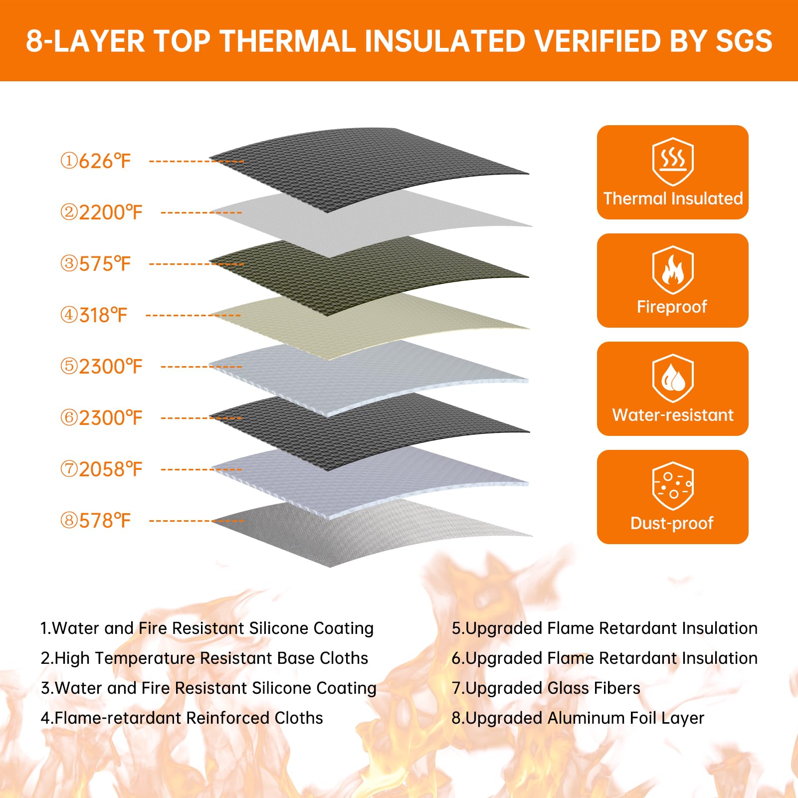 ENGPOW 5200°F Fireproof Document Bag with Lock,Upgraded Heat Insulated Fireproof&Waterproof Box 8 Layers File Organizer,Portable Home Travel Safe Storage for Important Documents,Passports,Laptop