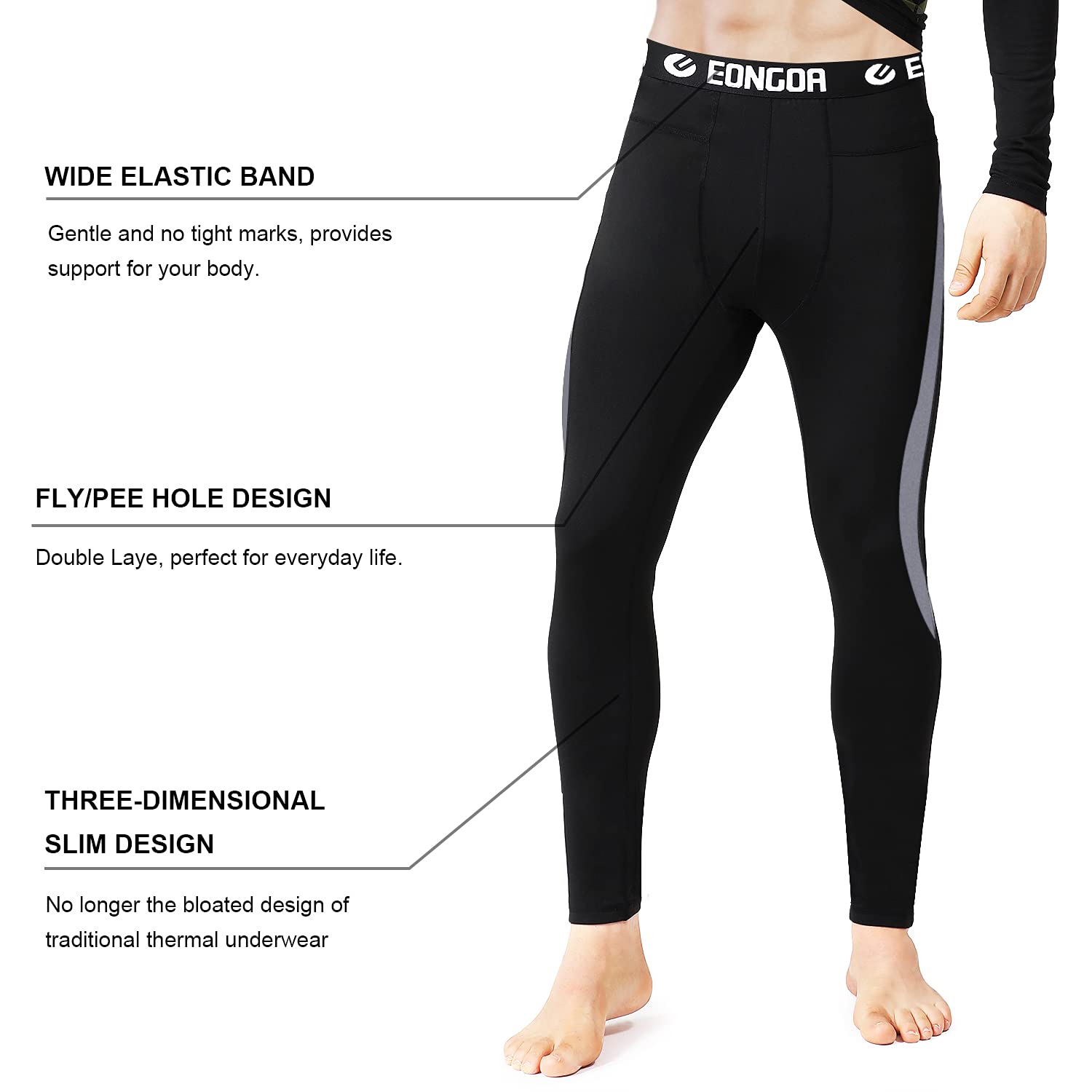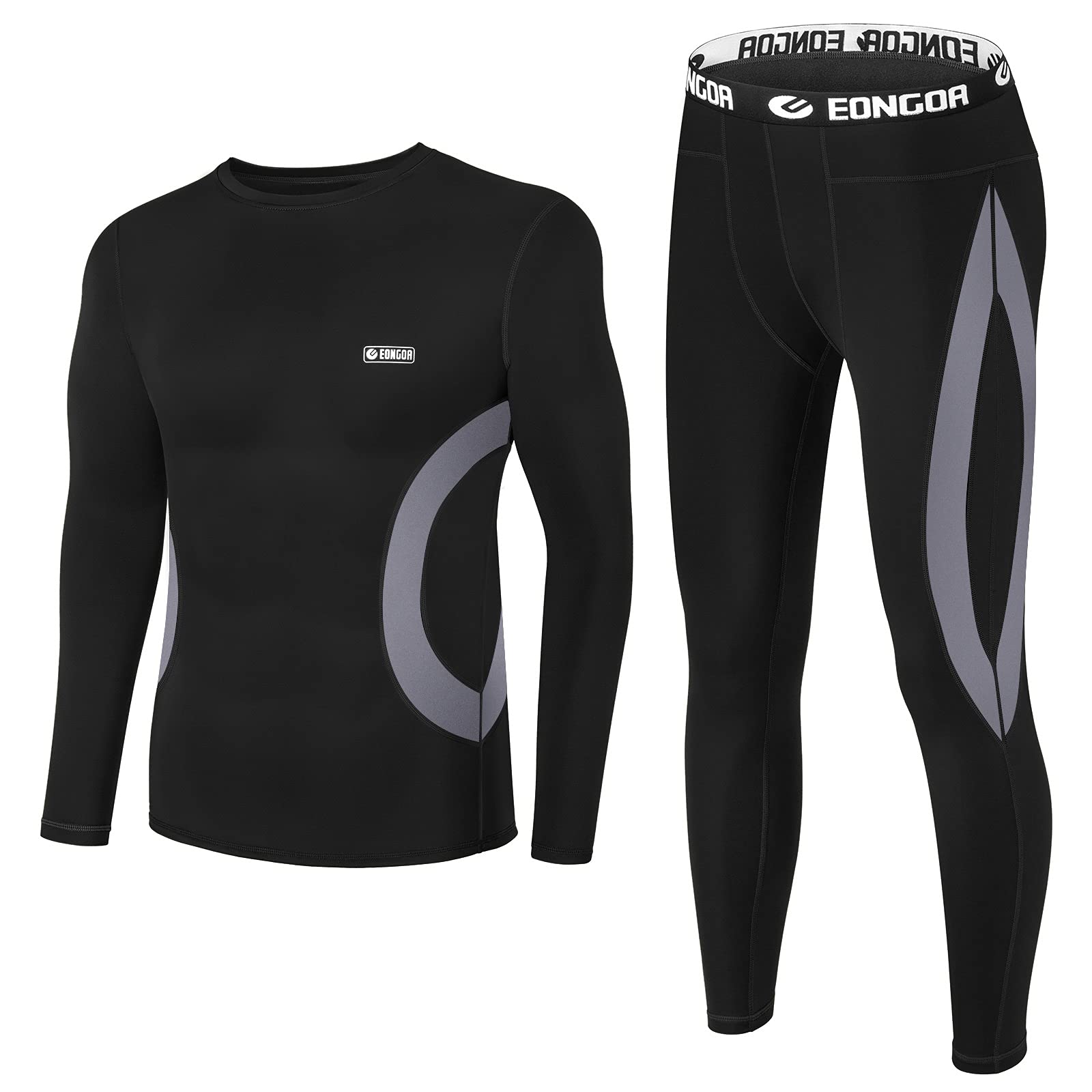 EONGOA Men's Thermal Underwear Set Long Johns Set with Fleece Lined Skiing Winter Warm Base Layers for Cold Weather A-black