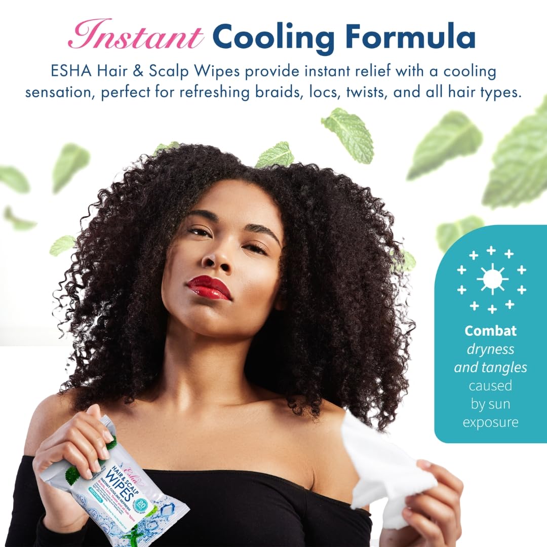 ESHA Hair & Scalp Wipes: Instant Cooling Refresh for Braids, Locs, Twists & All Hair Types - Stay Cool, Stylish, and Confident