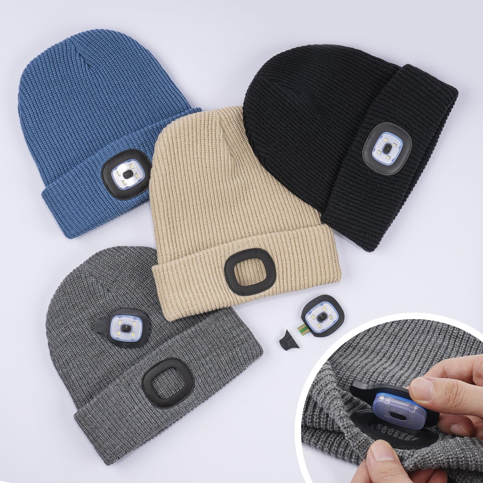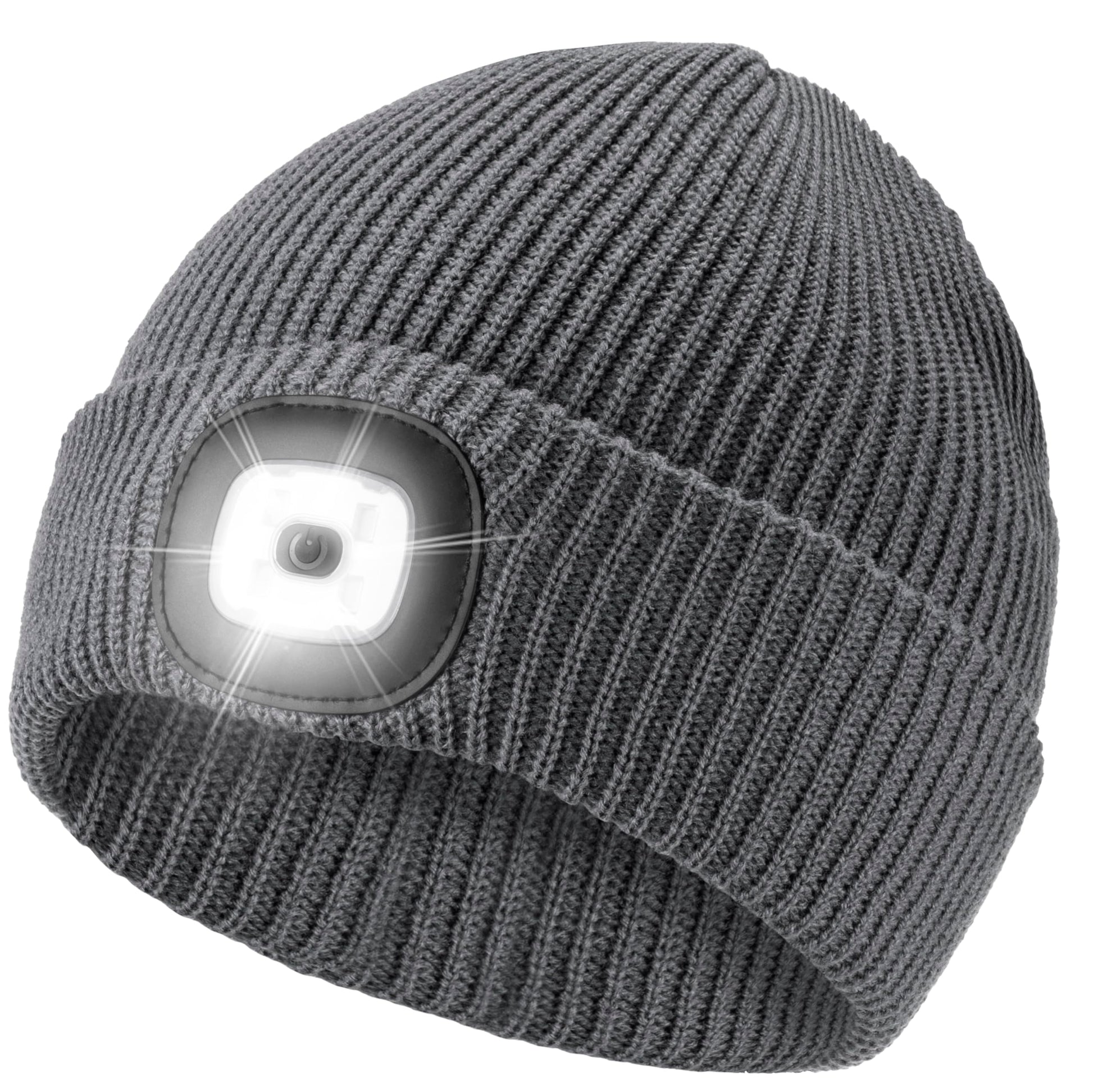 Etsfmoa Unisex Hat with Light,Winter Knitted Lighted Beanie for Men and Women,Rechargeable LED Cap