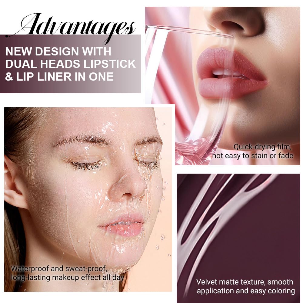 - 【2 IN 1 Lip Liner & Liquid Lipstick】The double ended design made you can use lipstick and lip liner on both ends. New design with dual heads lipstick & lip liner in one, for draw delicate lip line before applying lipstick. It combines lip line and liquid lipstick and makes double-end lipstick more perfect,meets the need of all occasions.