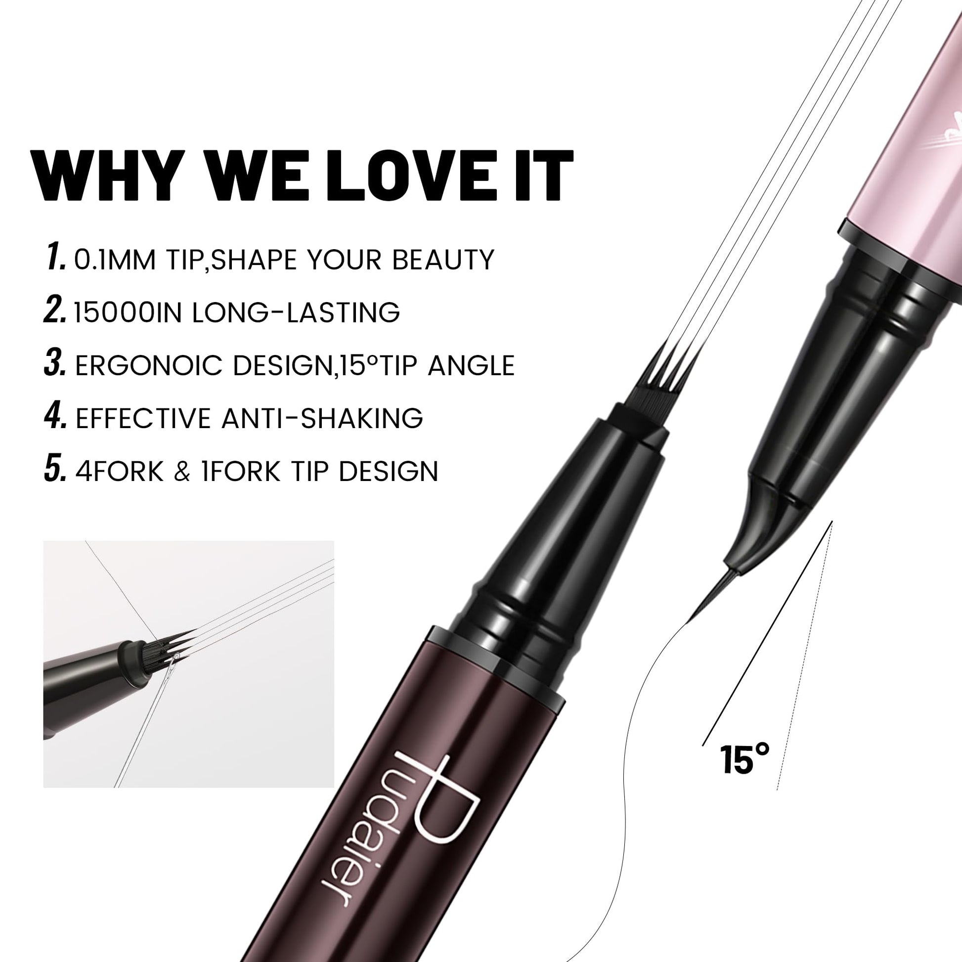 - NEWLY EYEBROW EASY MAKE UP:The 2-in-1 dual-ended 15° 4 fork tip microblading eyebrow pencil and eyebrow stamp.Waterproof eyebrow pencil is perfect for beginners and pros.SUPER QUICK and EASY to achieve ultra-precise,defined and natural-looking full brows in seconds,resembling 3D natural real hair.