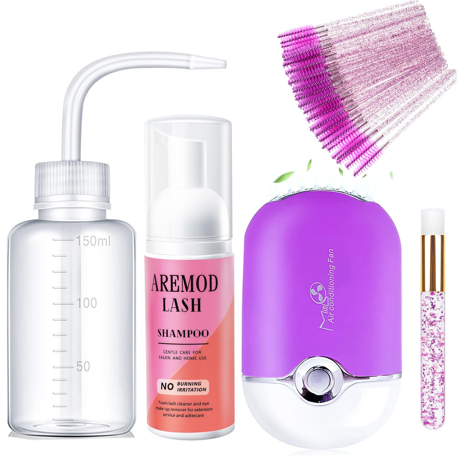 - 【Professional Eyelashes Cleanser Kits】AREMOD lash extension supplies sets included 50ml Lash Shampoo for lash extensions,1pcs handheld USB mini Lash Fan for lash dryer,50pcs disposable eyelashes brush,1pcs reusable nose brush,1pcs 150ml washing bottle. A professional cleaning kits for meeting your all needs on grafting eyelash and cleaning. Suitable for beauty salon and home use, perfect for personal daily care as a nourishing extension of eyelashes.