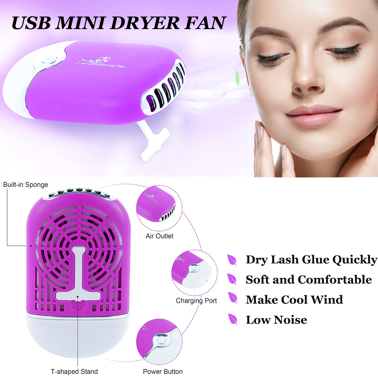- 【Little USB Eyelash Drying Fan】The mini lash fan dryer is portable and professional, built in sponge, you can add perfume on the soaking sponge based on the preferences of the client.Equipped with cooling system to blow out cold air to dry eyelash quickly after wash. T-shaped bracket on the back can make it stand stable on table, works with USB charger, lightweight and small size is convenient and easy to use and store. You can carry it in your bag for cooling daily use.