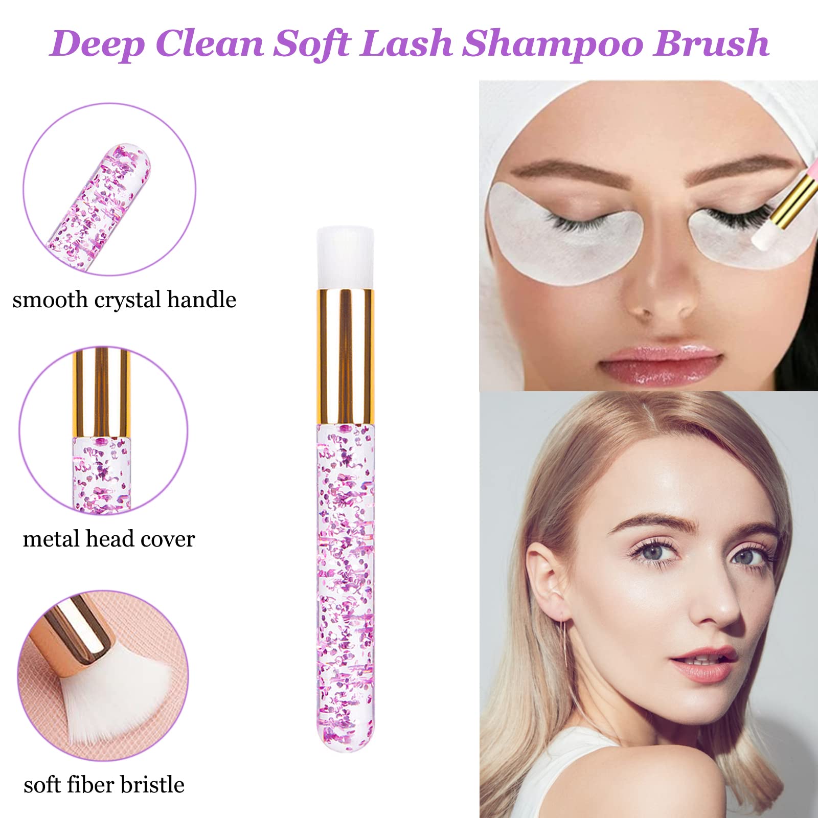 Eyelash Cleanser for Extensions, Lash Shampoo Kit with Lash Fan, 60ml Lash Shampoo,Cleaning Brush and Wash Bottle for Lash Bath(purple)