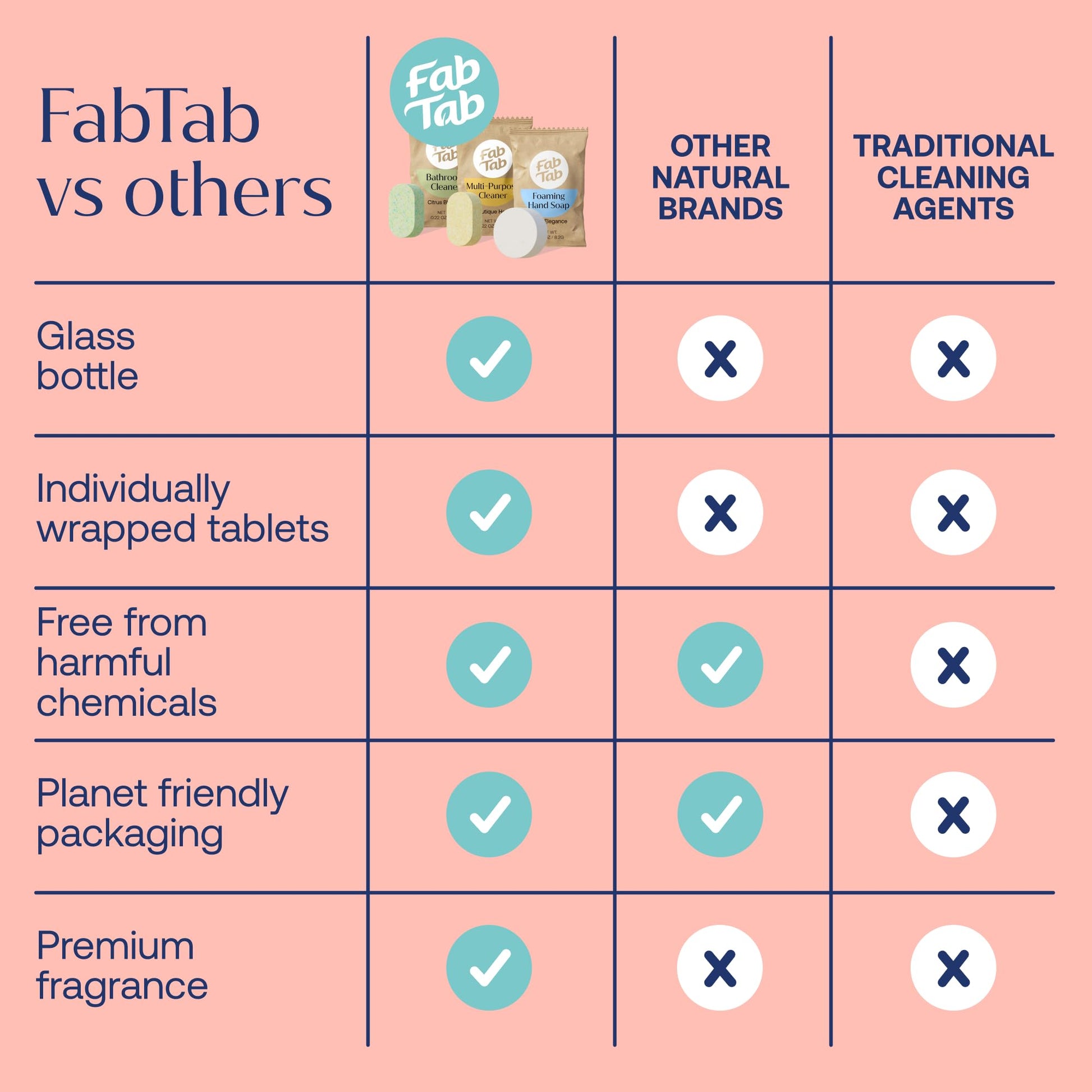 Fab Tab Home Starter Kit - Natural Cleaning Products - Household Cleaners - All-Purpose Cleaner Tablets - Plant-Based, Plastic-Fee - No Harsh Chemicals | Cleaning Kit