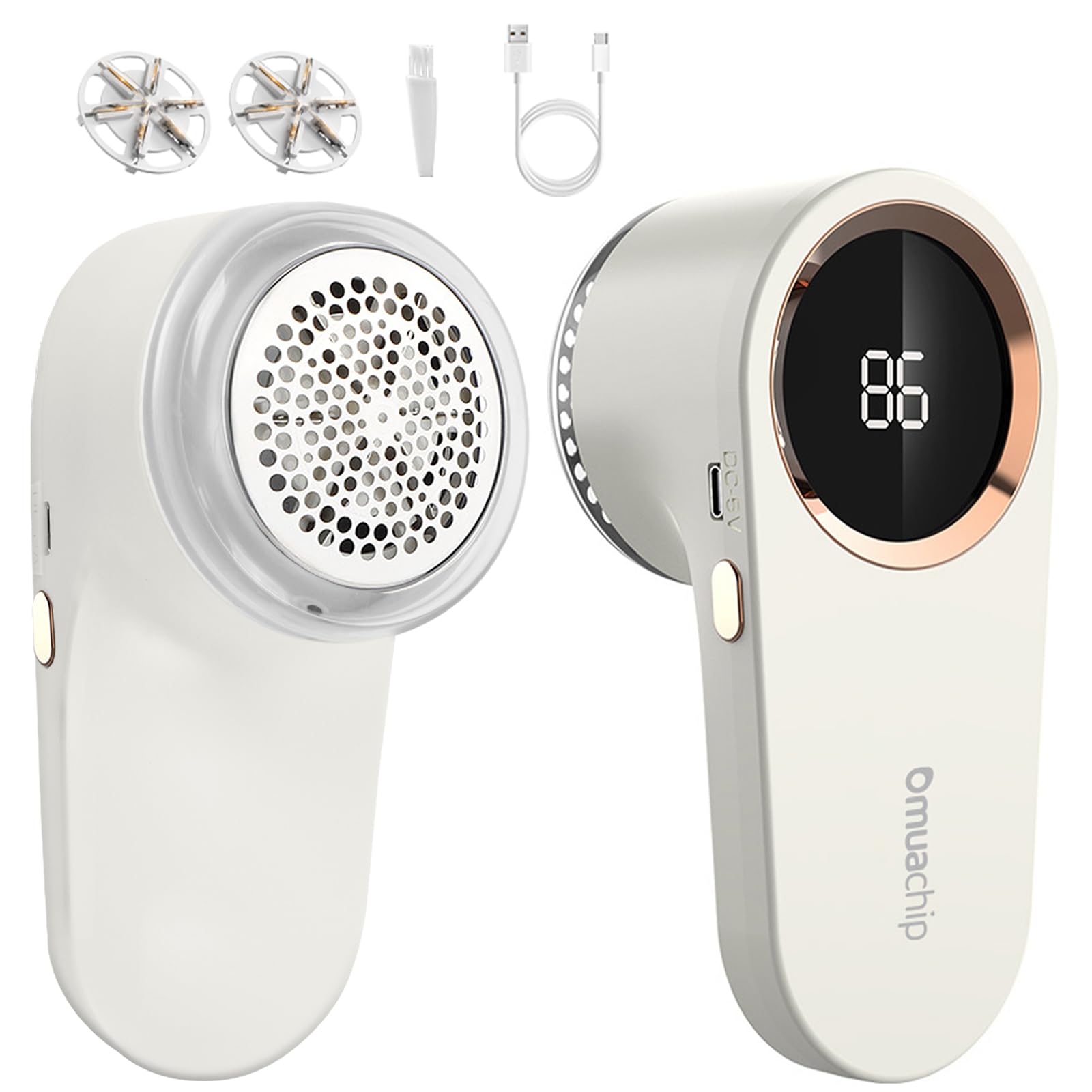 Fabric Shaver, Lint Remover Rechargeable, Electric Portable Sweater Defuzzer with 6-Leaf Blades, Digital Screen, Remove Pilling for Clothing, Couch, Furniture, Fuzz, Lint Ball, Pillings(White)