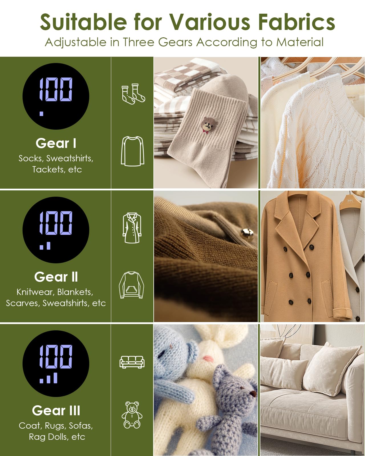 - 【Digital Display】- Our electric lint remover comes with a large Digital display, which can clearly show the remaining battery and speed gear. The display screen makes our fabric shaver more intuitive and easy to use. NOTE: The battery level ranges from 0 to 100, when the display battery level is less than 10, it needs to be charged.