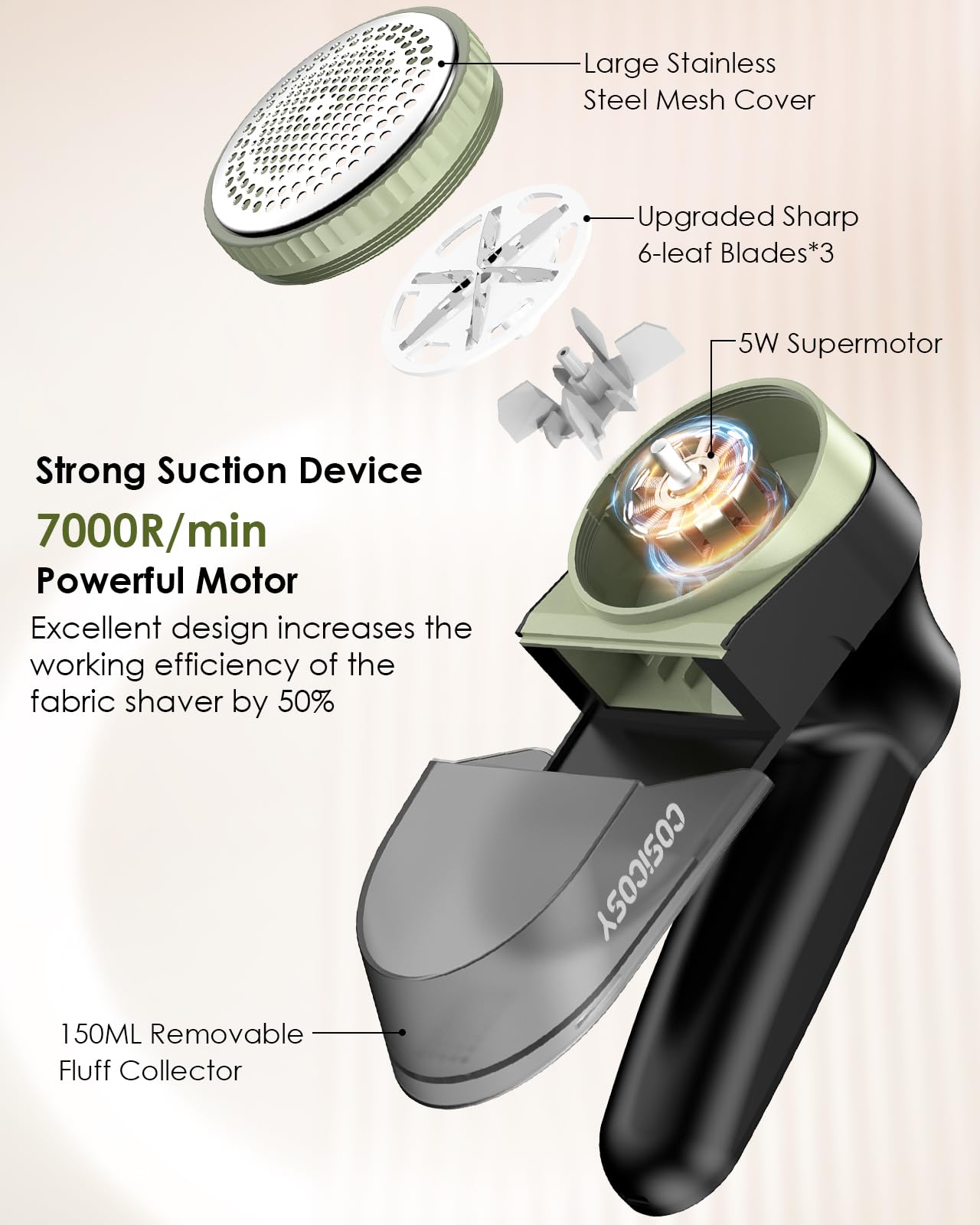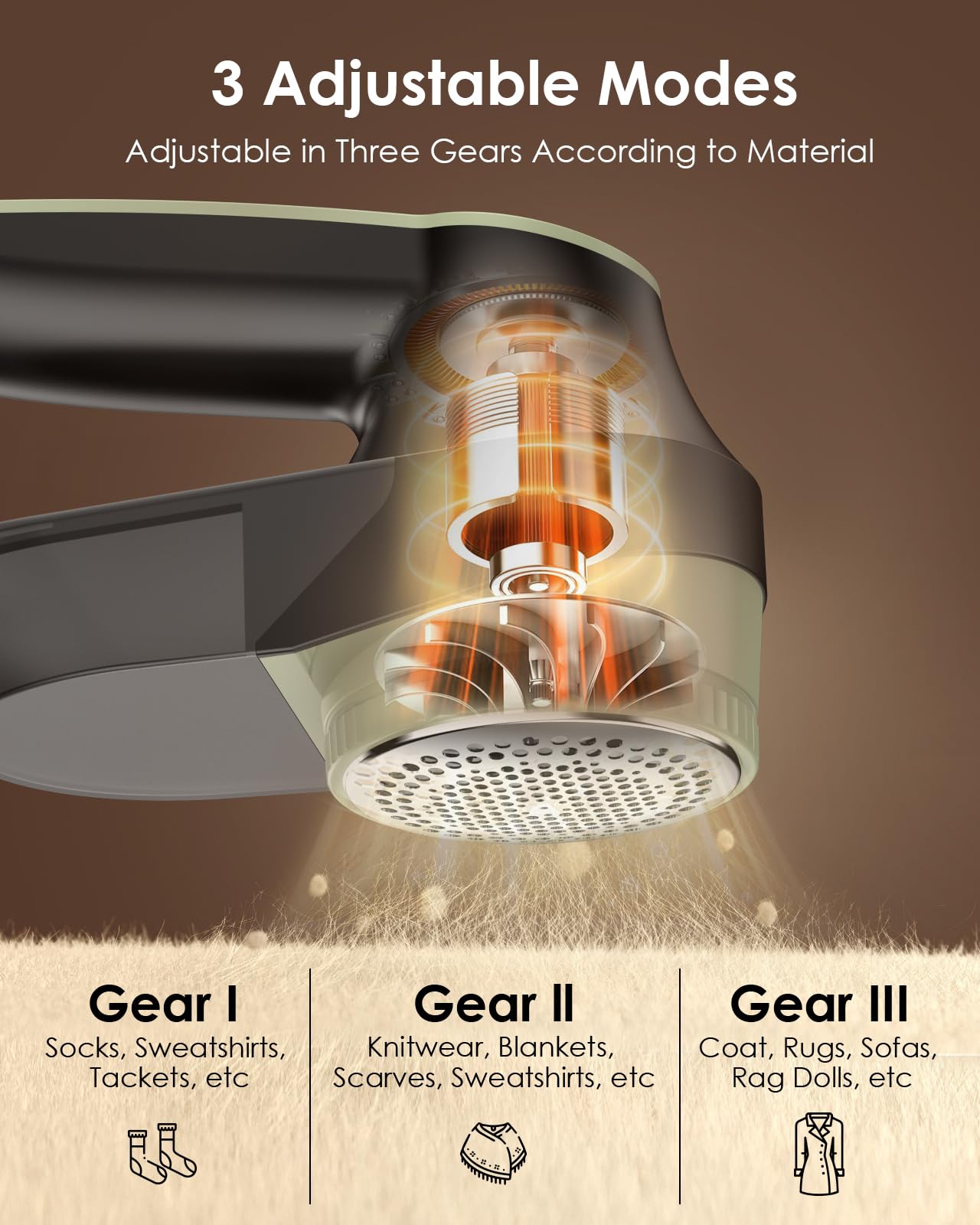 - 【3 Adjustable Speeds & Powerful】 - Our sweater lint shaver equipped with 3 speed settings (I/II/III), you can choose the gears according to the type of clothing. Firstly, this fabric pill shaver mesh cover has 3 sizes of holes, which can quickly clean up hair balls of different sizes. Secondly, This electric lint remover has improved the 6-leaf stainless steel sharp blades, which increase the working efficiency by 50% and meet the needs of all fabric.