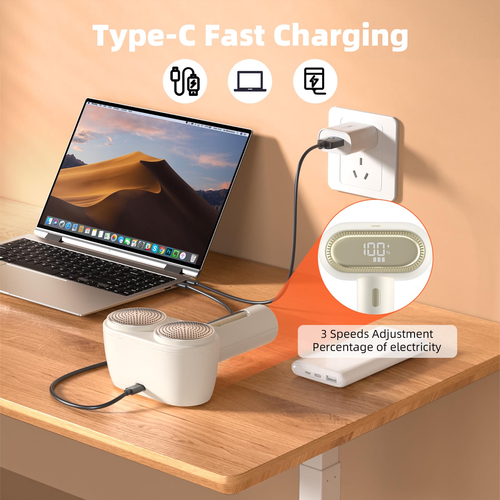 - šš²š©š-š š šš¬š šš”šš«š š¢š§š : Equipped with an HD LED screen, the lint shaver displays the current battery level. The built-in battery supports over 30 cordless lint removals. With a Type-C charging cable, it is compact and portable, perfect for travel or cordless operation during dry cleaning. Therefore, there is no need to waste money on replacement batteries