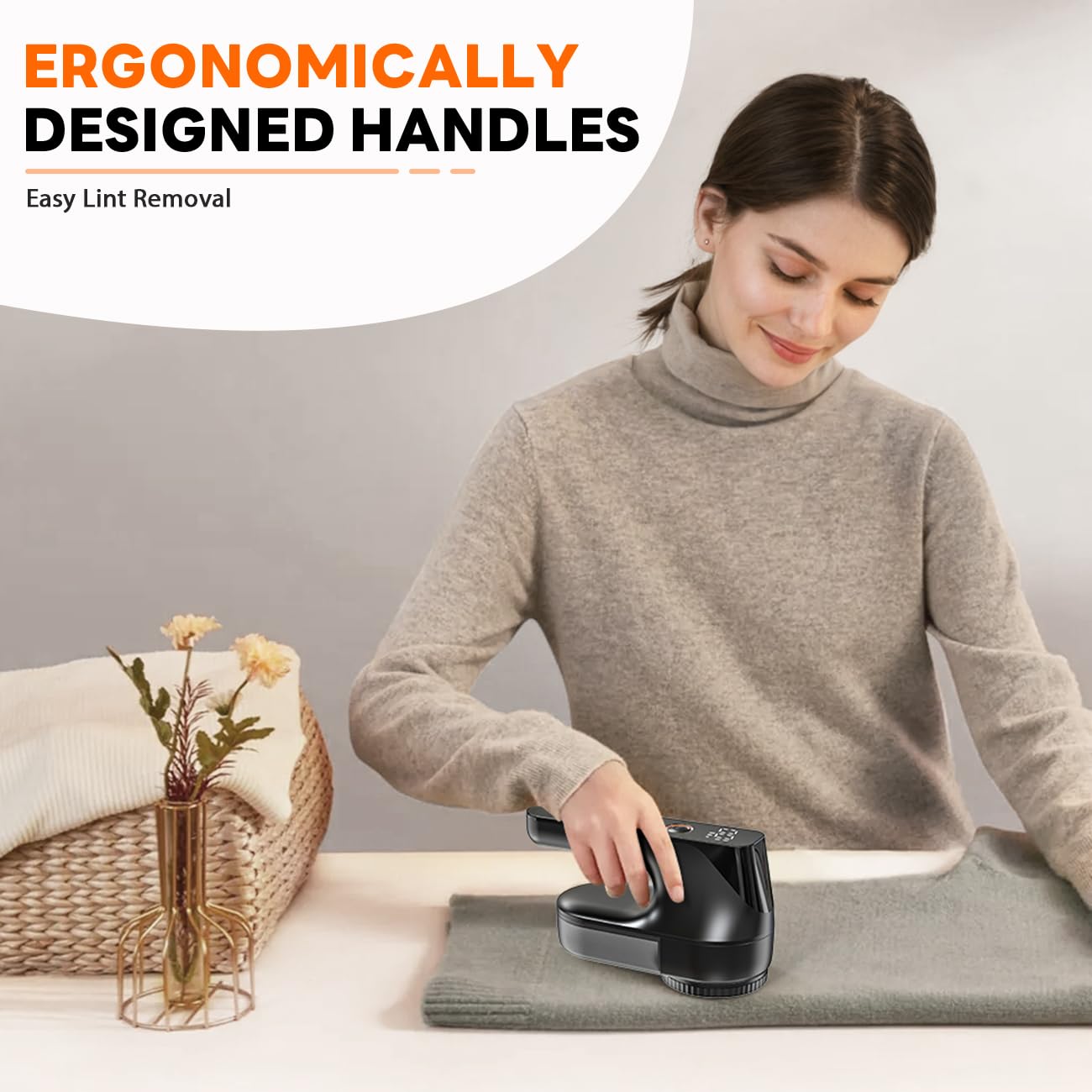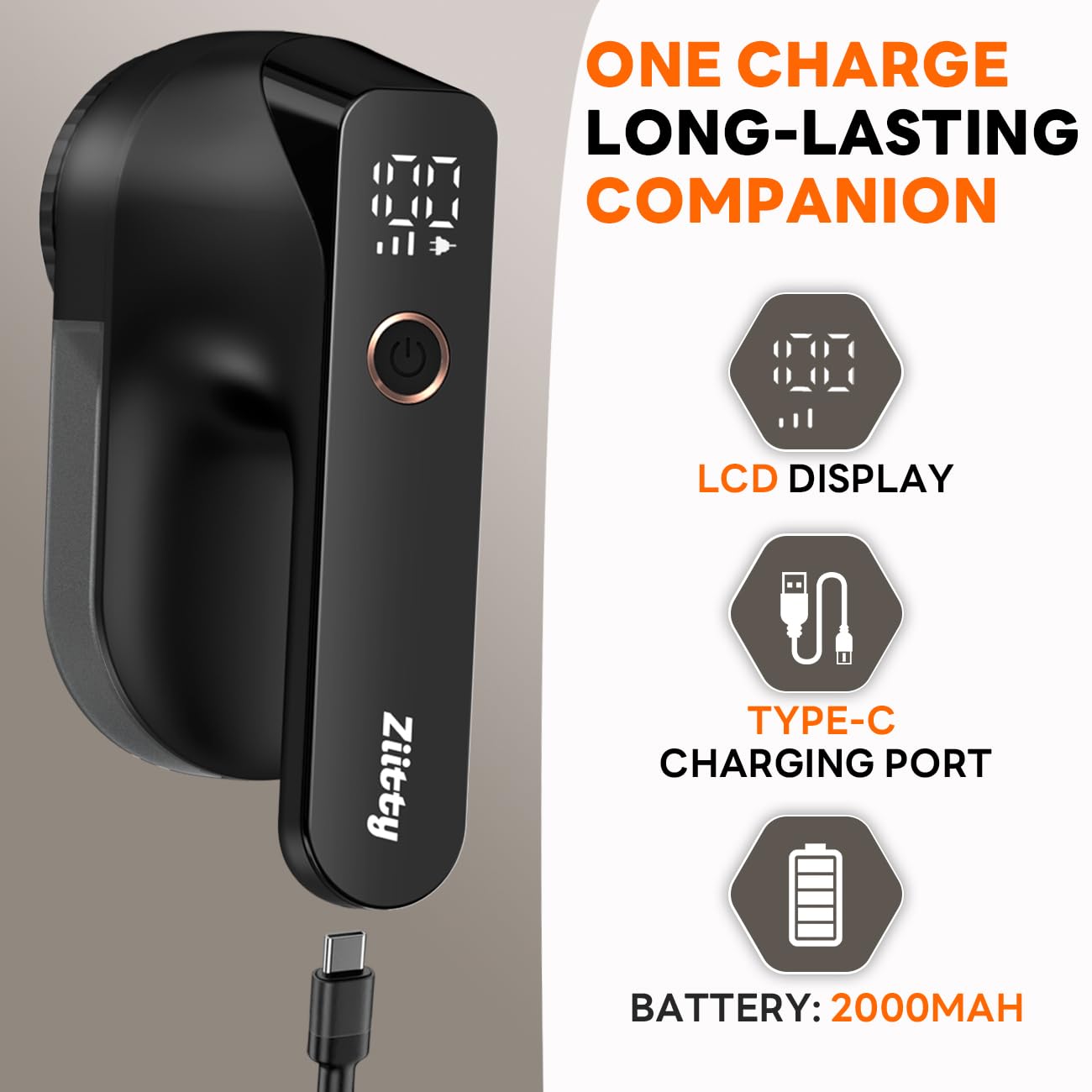 Fabric Shaver - Ziitty Lint Remover for Clothes, Sweater Defuzzer with LCD Display, 3-Speeds, 6-Blade, Type-C Rechargeable, Sweater Shaver to Remove Pilling Fuzz Lint Balls Pills for Clothes Furniture