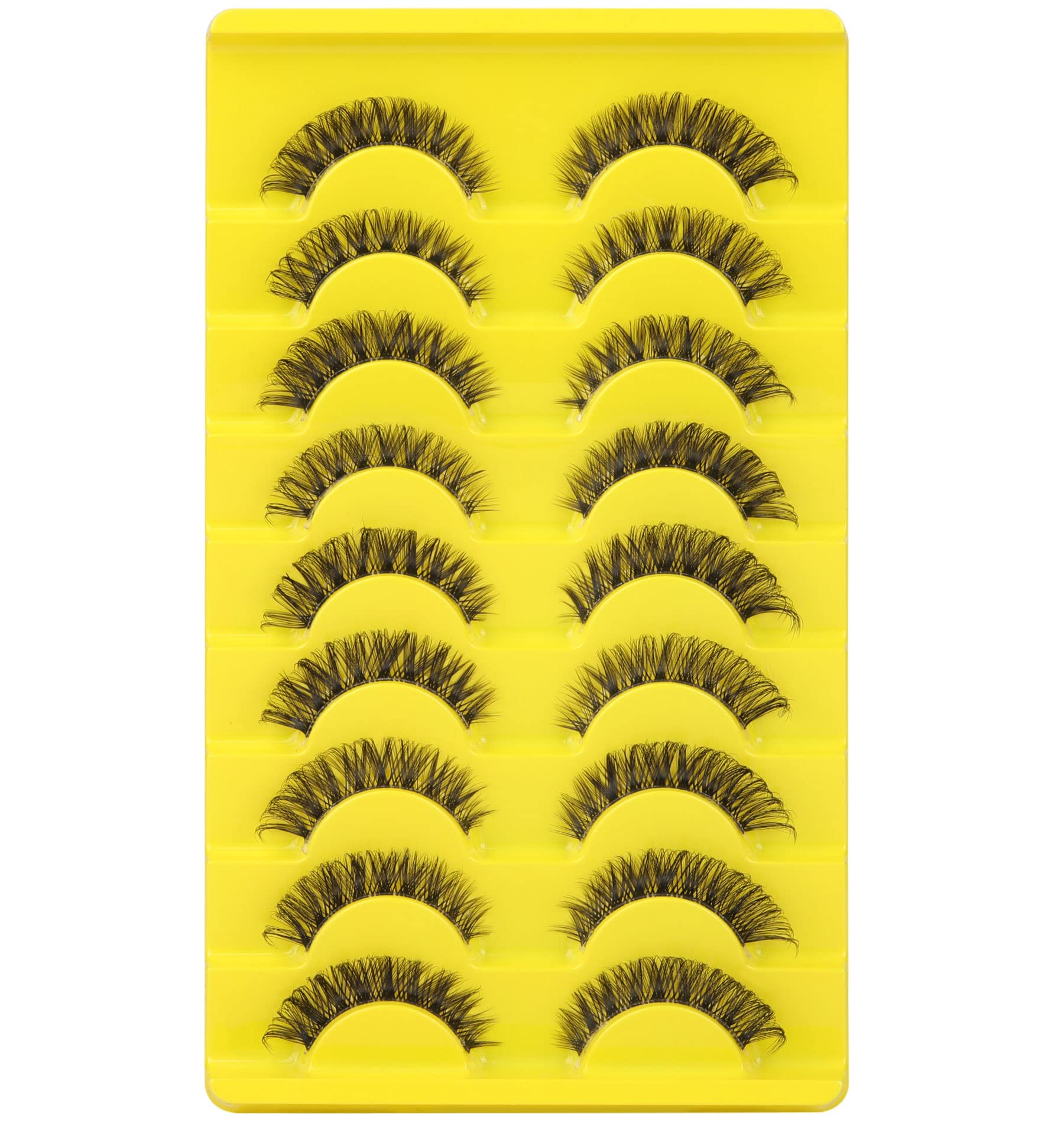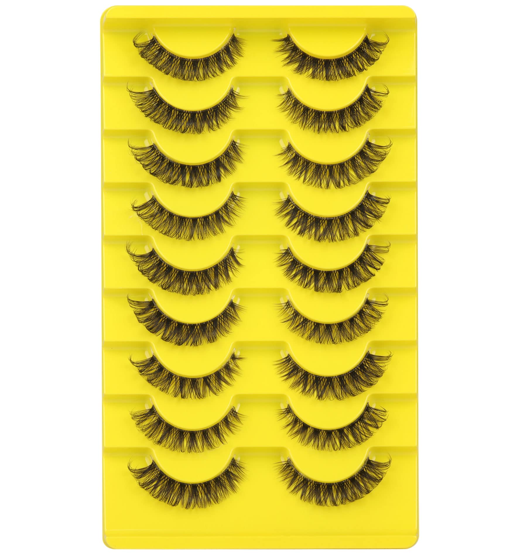 False Eyelashes Natural Russian Strip Lashes Wispy Cat Eye Mink Lashes 3D D Curl Fake Eyelashes Lightweight Transparent Band Handmade Reusable Lashes Pack