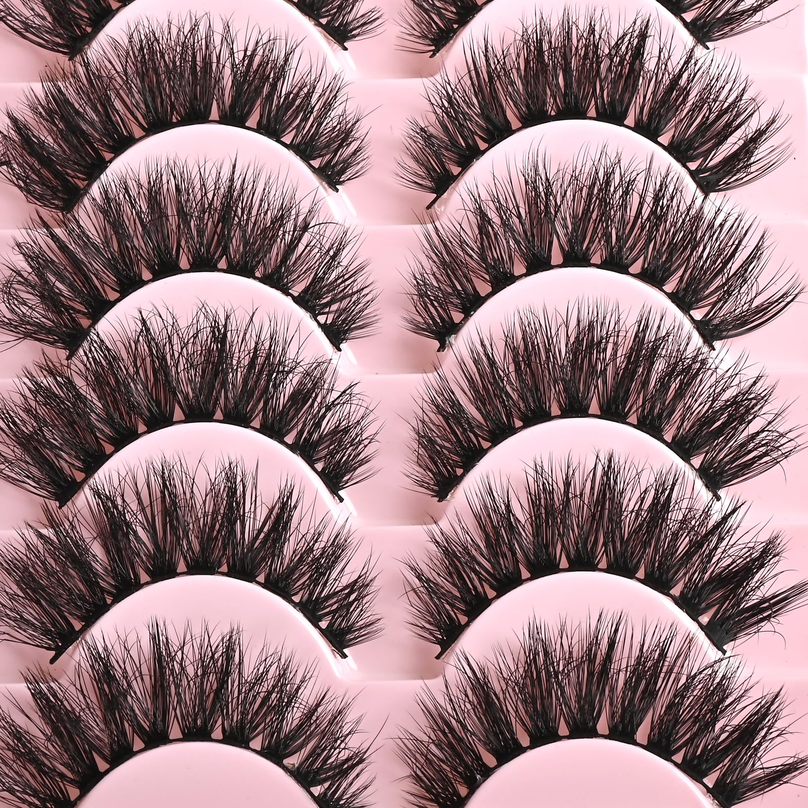 FARRED Wispy Lashes Hybrid Mink Eyelashes 14 Pairs Short Cat Eye Natural Fluffy False Eyelashes Faux Mink Strip Eye Lashes Pack for Daily Makeup (F18 | 8-14 mm)