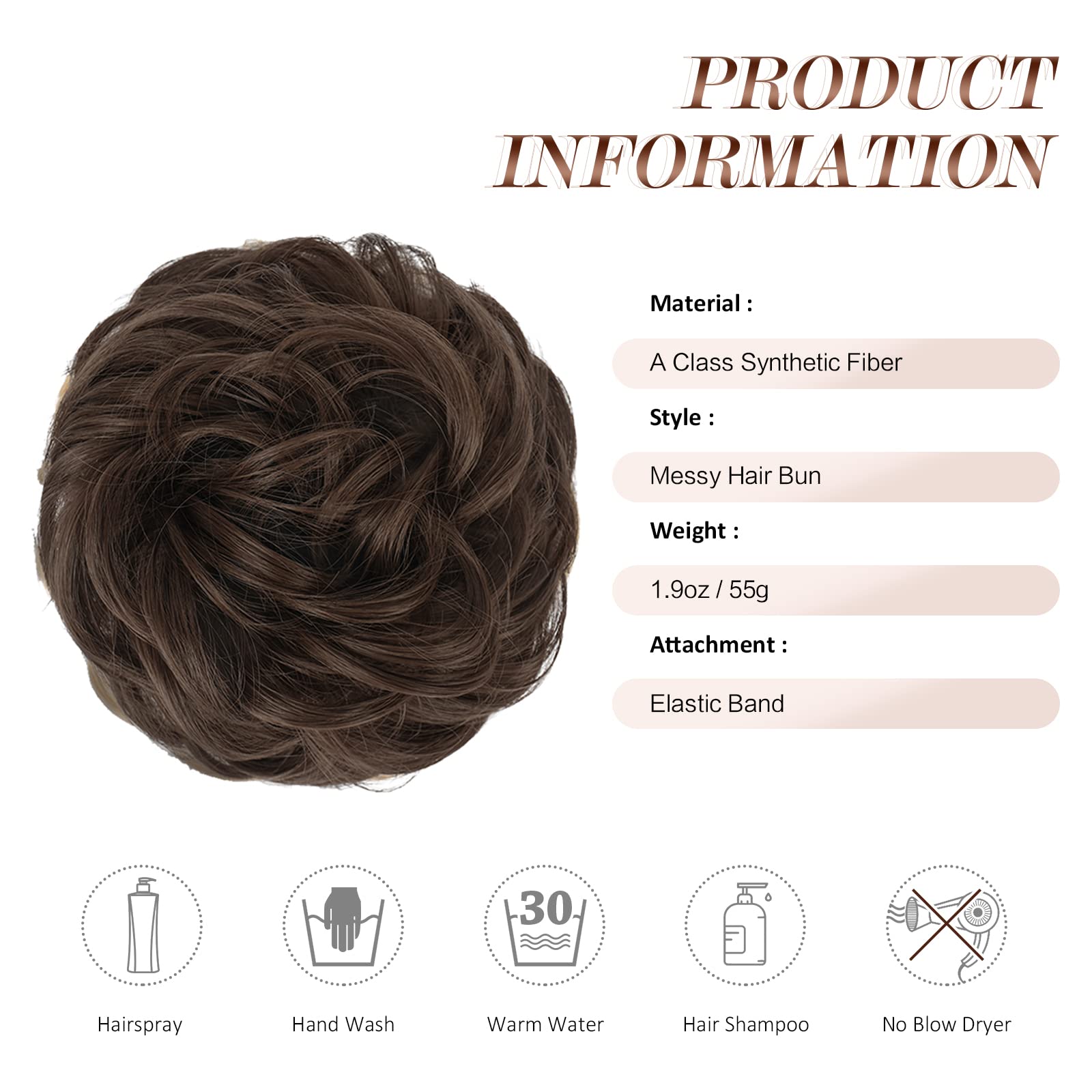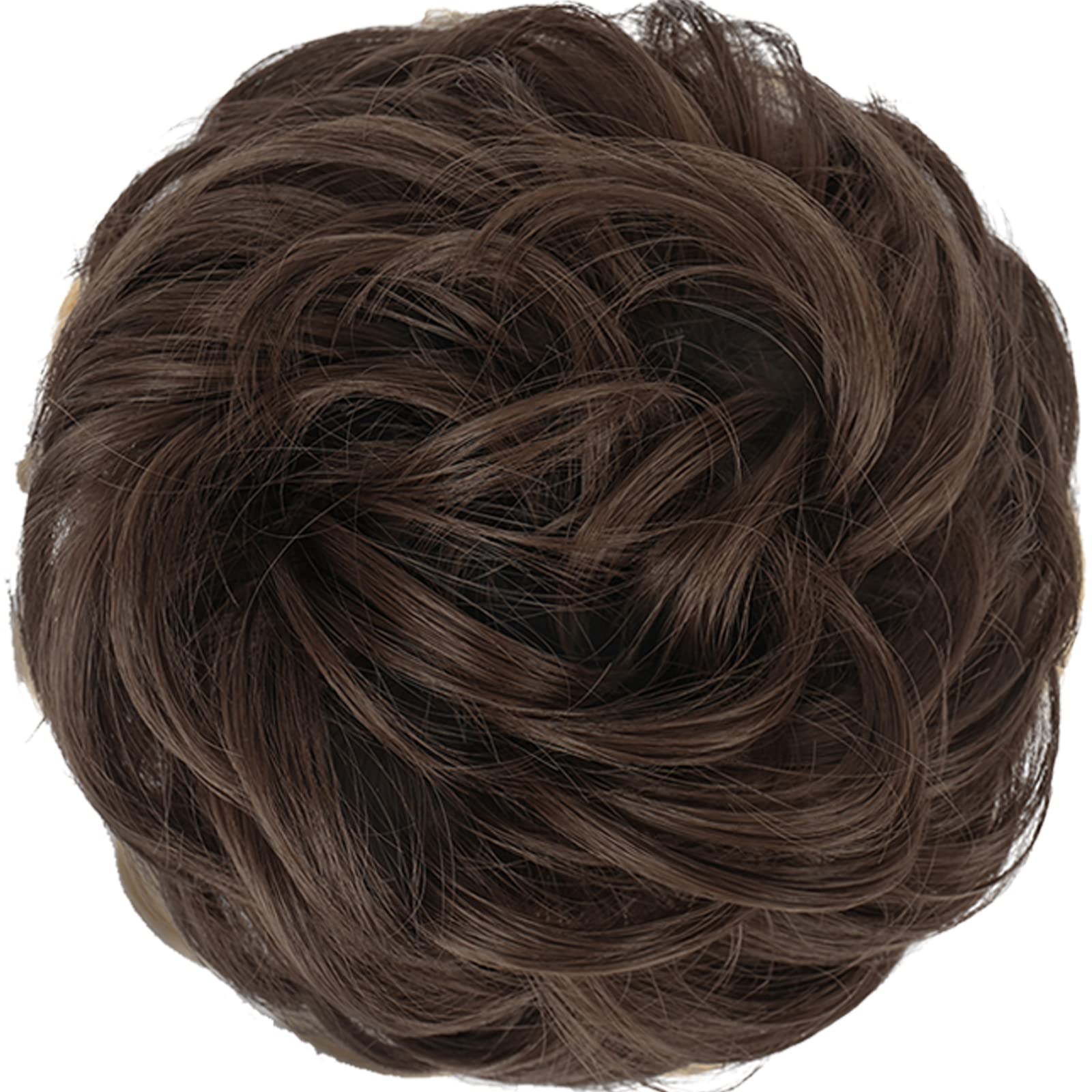 FESHFEN Messy Bun Hair Piece - Large Wavy Curly Elastic Hair Bun Scrunchies Ponytail Extensions Synthetic Chignon Hairpieces for Women, Medium Chestnut Brown 1.94oz