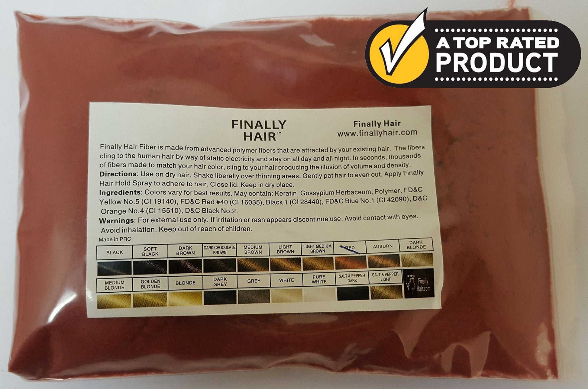 - Our natural, Vegan, Cruelty-Free Hair Building Fibers are made under strict quality standards in our ISO 9001 facility. We responsibly and sustainably source only the finest ingredients. No ammonium chloride or other ingredients that may be unhealthy. The fibers won't clog your pores. The fibers are magnetized for optimum styling. Please use Finally Hair strong fiber lock spray after you apply the fibers - sold separately. The spray will lock the fibers in place until you shampoo them out.