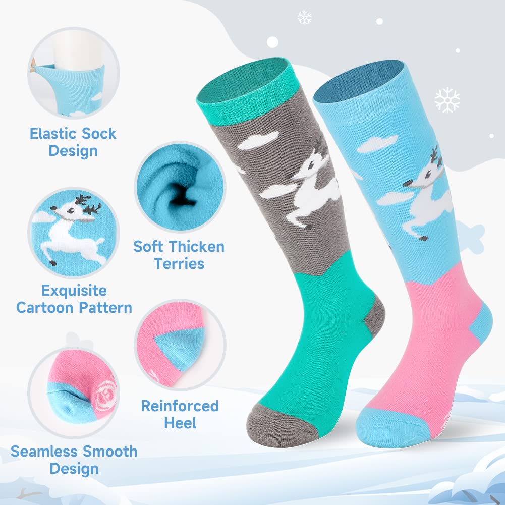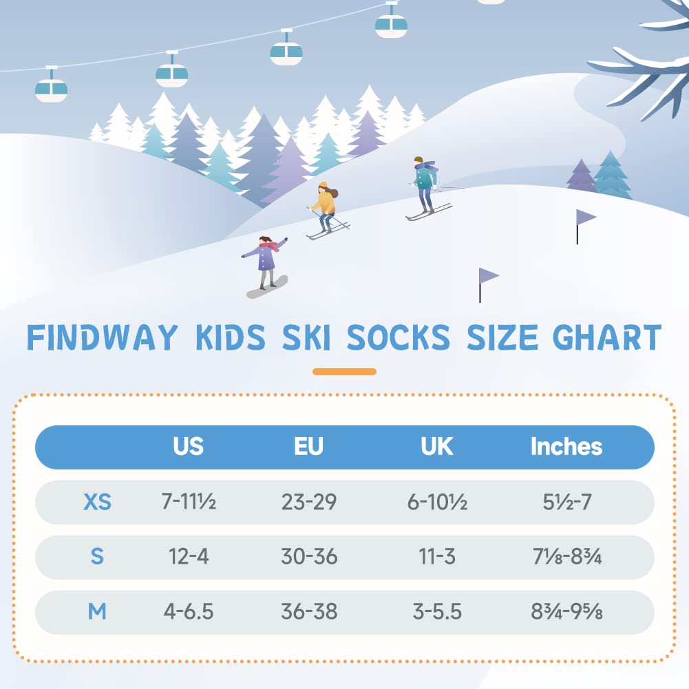 findway Kids Ski Socks, 2 Pairs /3 Pairs Warm Cotton Snowboard Socks Boys Girls for Skiing Outdoor Cold Weather