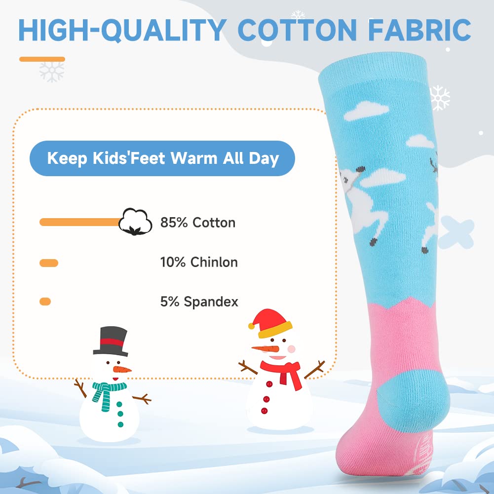 - Non-Slip Cuff : Comfortable elastic cuff design ski socks for kids won't easily slip off, stay up on the legs, super fitness creates more space inside the ski boot for maximum fun on the slopes