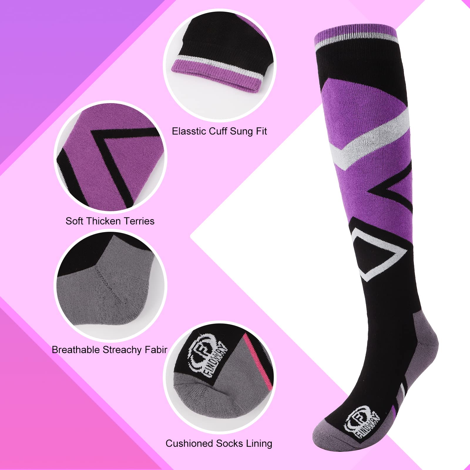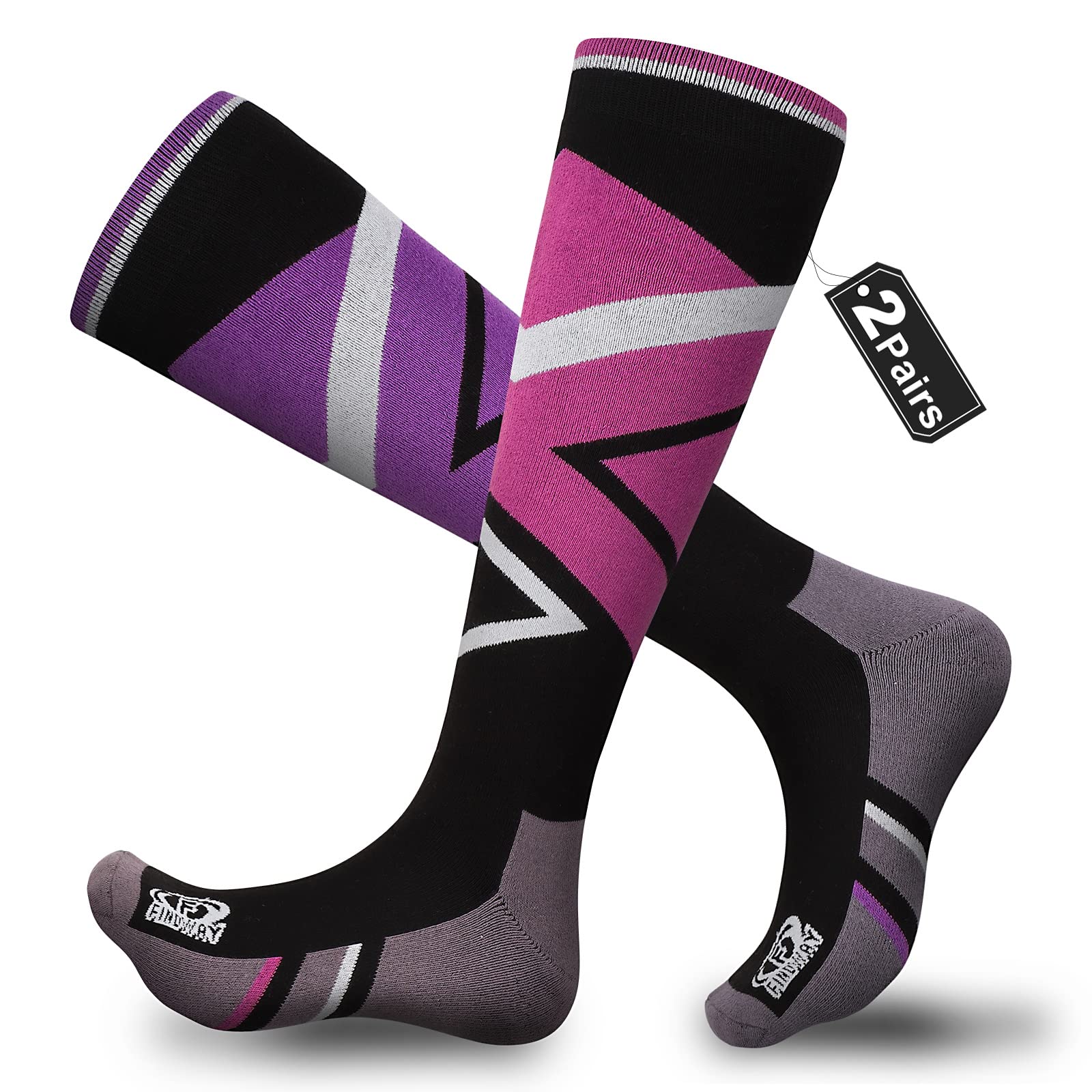 findway Ski Socks,Snowboard Socks for Womens Mens, 2 Pairs Winter Warm Knee-high Hiking Athletic Socks