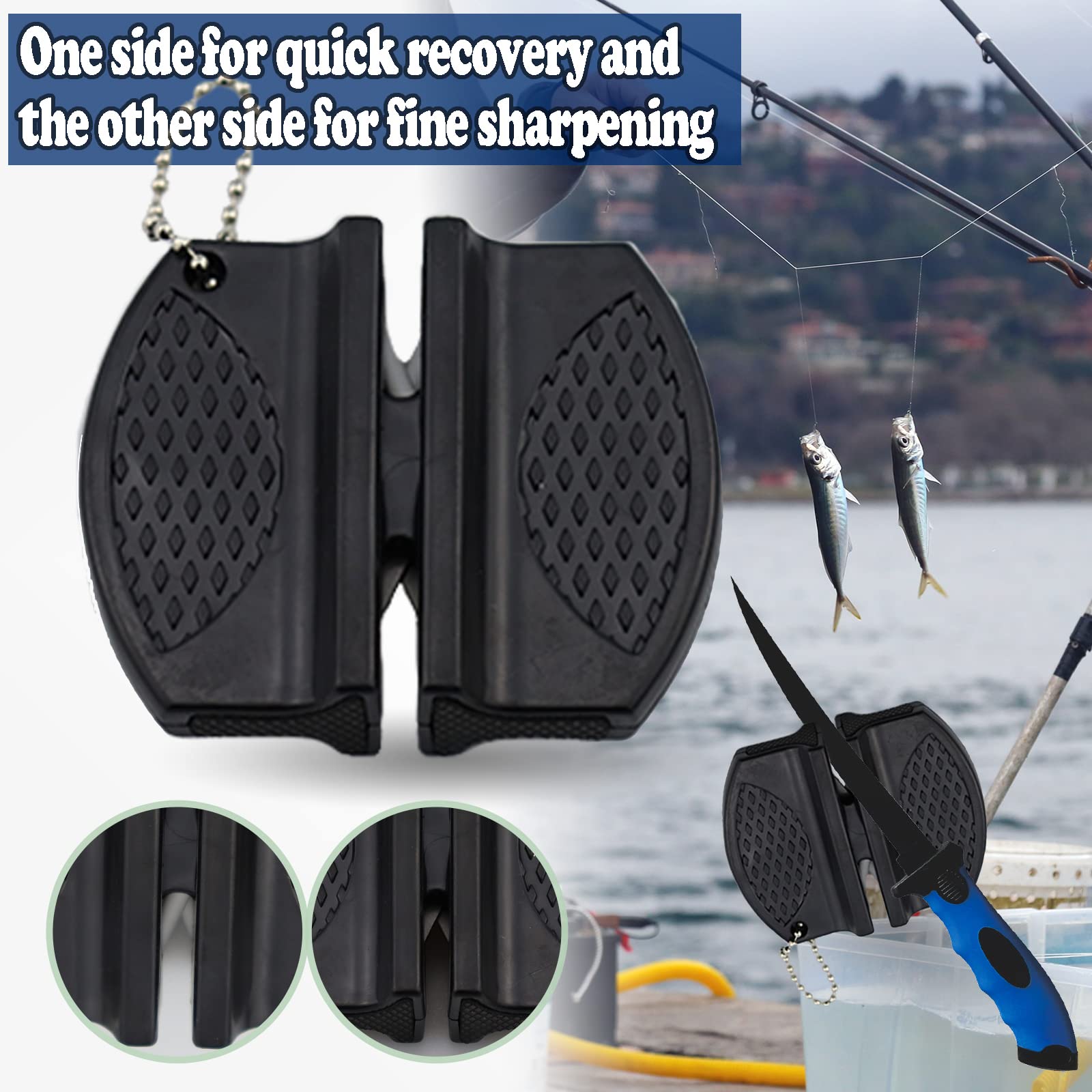 - 🐟Portable Sharpener: Two-sided Sharpening material, one side is used for quick recovery of the blade, and the other side is used for fine polishing of the blade. Easy for using and carrying.