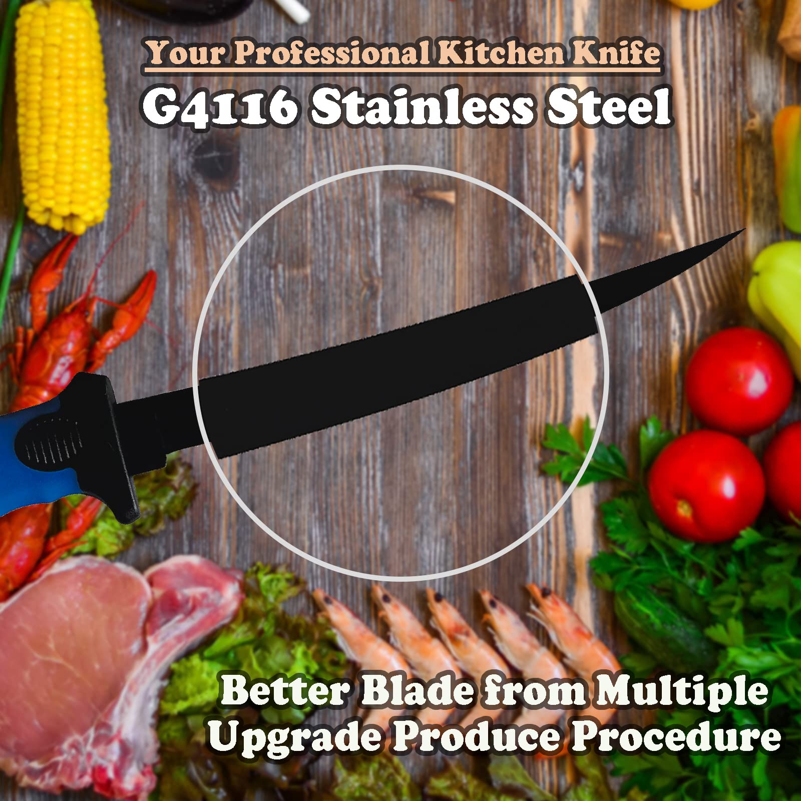 - 🐟Muti-functional Use Fillet Knife Fishing: High quality stainless steel blade, makes it sharp enough to cut fish easily. The Black Corrosion-resitant Coating, keeps it shiny and beautiful. And it's Rust-resistant, Tough and Durable. A good choice for your outdoor or home use!