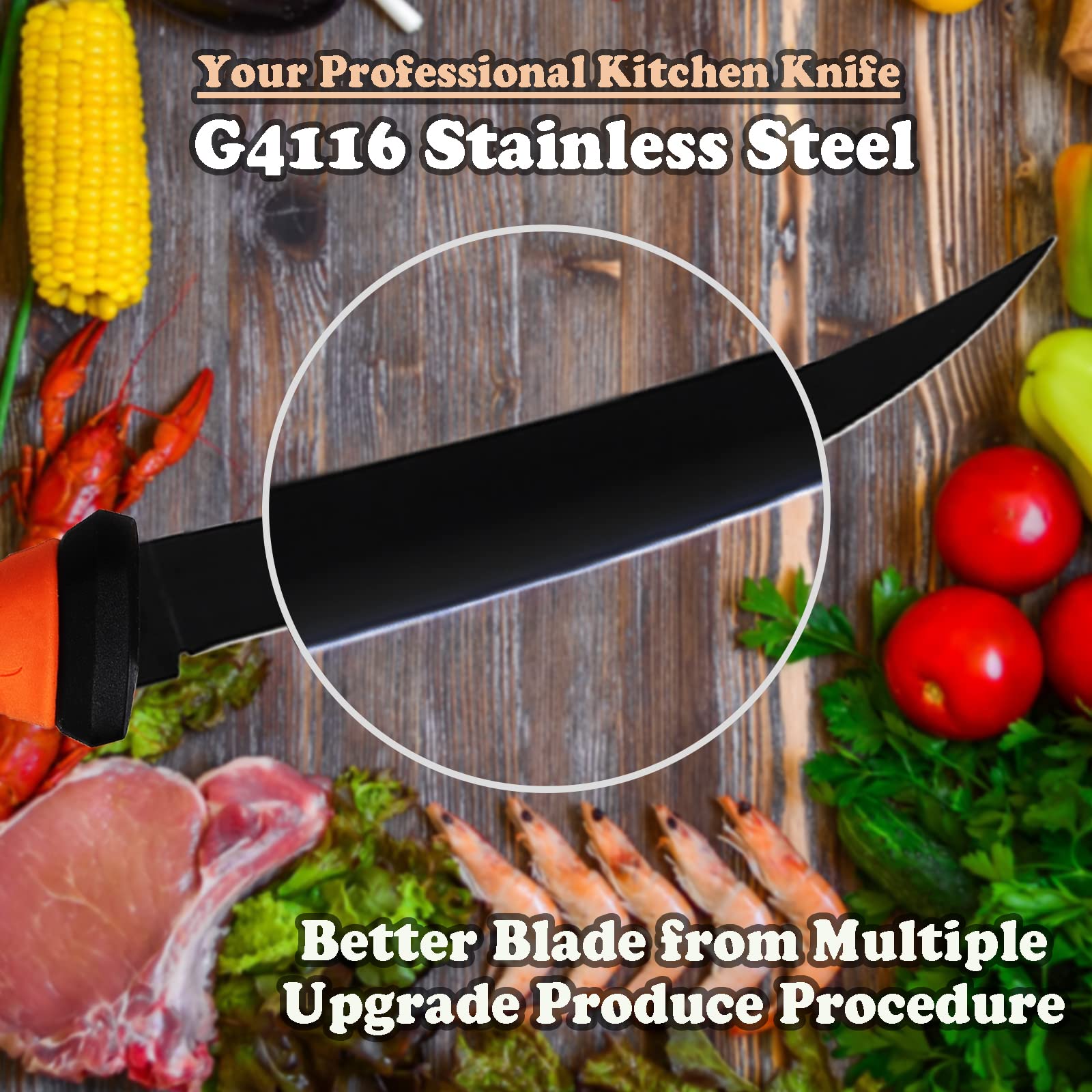 - 🐟Muti-functional Use Fillet Knife Fishing: High quality stainless steel blade, makes it sharp enough to cut fish easily. The Black Corrosion-resitant Coating, keeps it shiny and beautiful. And it's Rust-resistant, Tough and Durable. A good choice for your outdoor or home use!