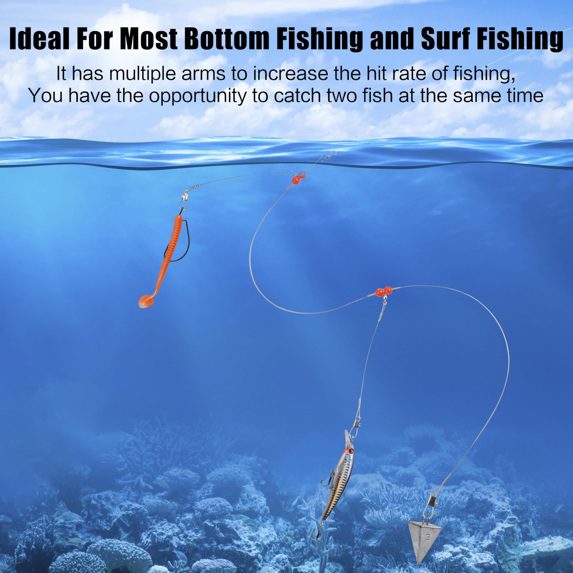 - WIDE APPLICATION: Saltwater fishing rigs are long enough to fish pike/salmon/bass/shad/herring/muskie/crucian/pickerel/snapper in the saltwater/lake/river and sea. Ideal for most bottom fishing and surf fishing