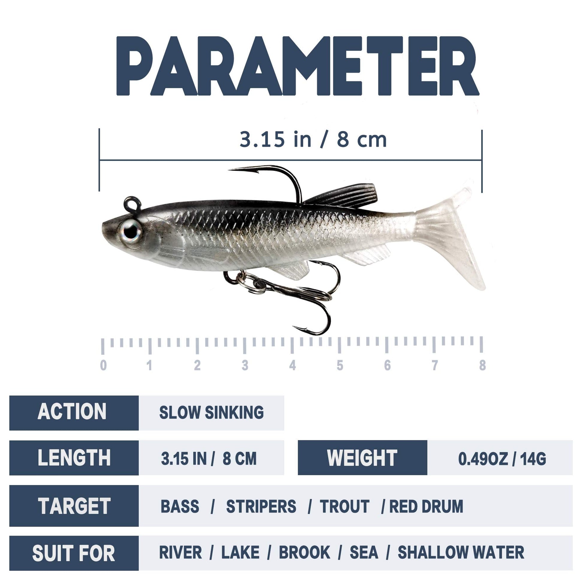 Fishing Lures for Bass, VMSIXVM Fishing Jig Head Swim Shad Lure, Soft Plastic Swimbaits with Paddle Tail, Trout Bass Sinking Baits Kit for Saltwater/Freshwater, Fishing Gear and Fishing Gifts