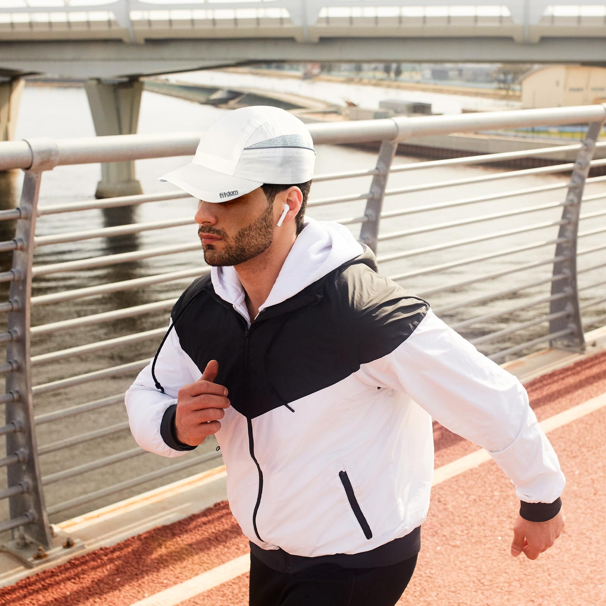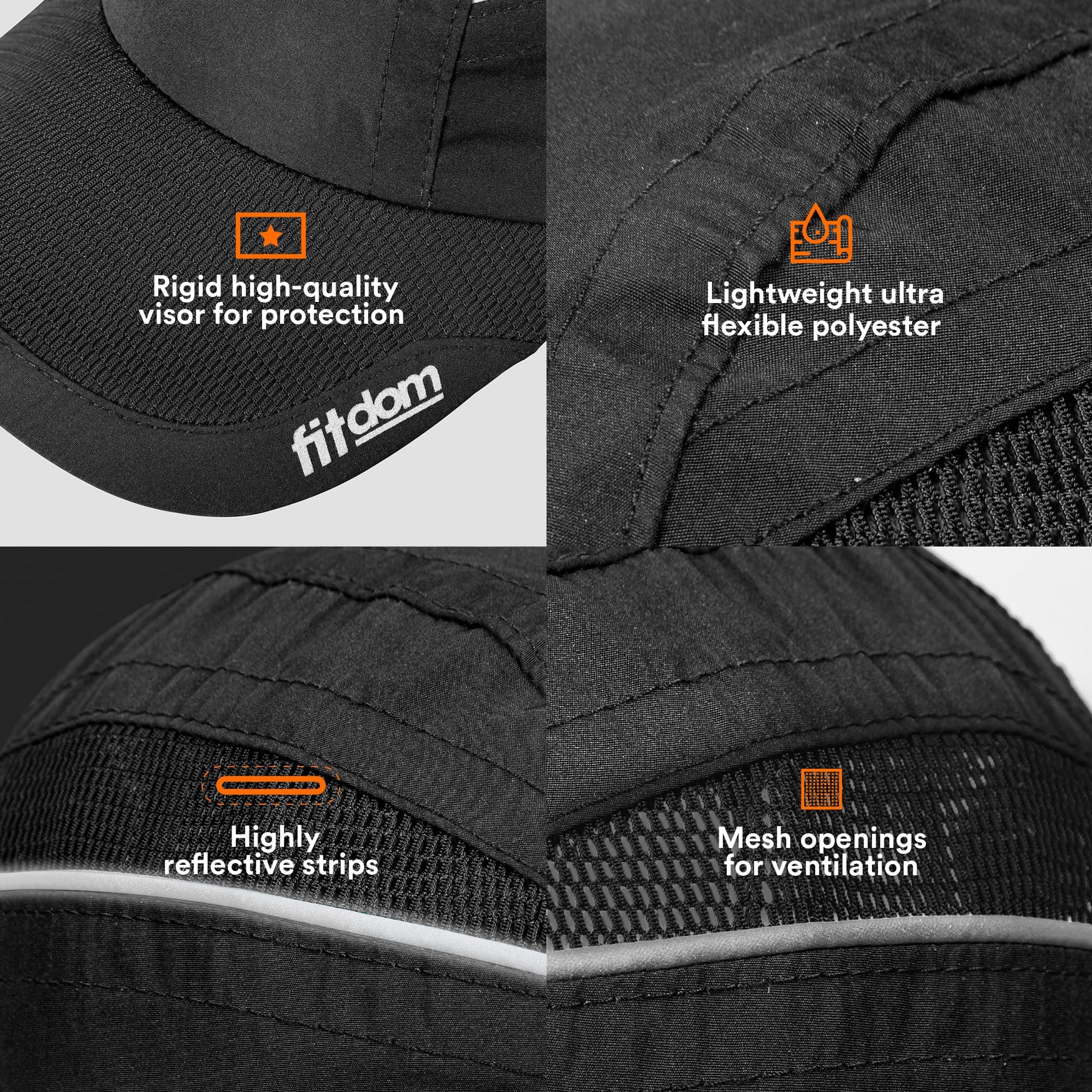 Fitdom Running Cap is 50% lighter than typical cap on the market. It is designed to help performing athletes work harder and go farther with maximum comfort.