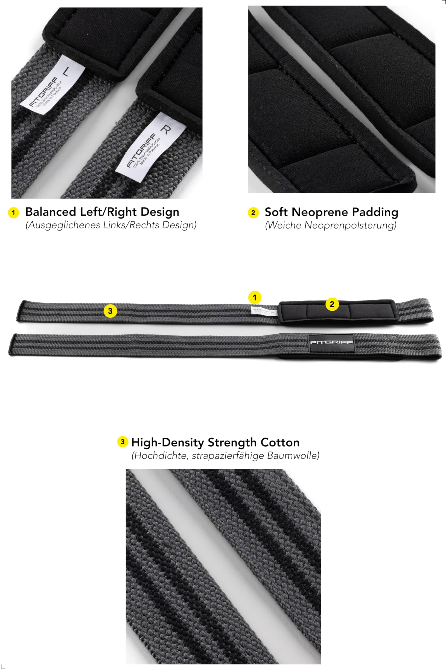 - SECURE & FOCUSED TRAINING - Our FITGRIFF lifting straps are the silent training partner for working out, deadlifting, heavy rowing, lat pulldowns, and pull-ups. Designed to distribute weight and reduce forearm fatigue, they keep your attention on muscle activation, not your grip.