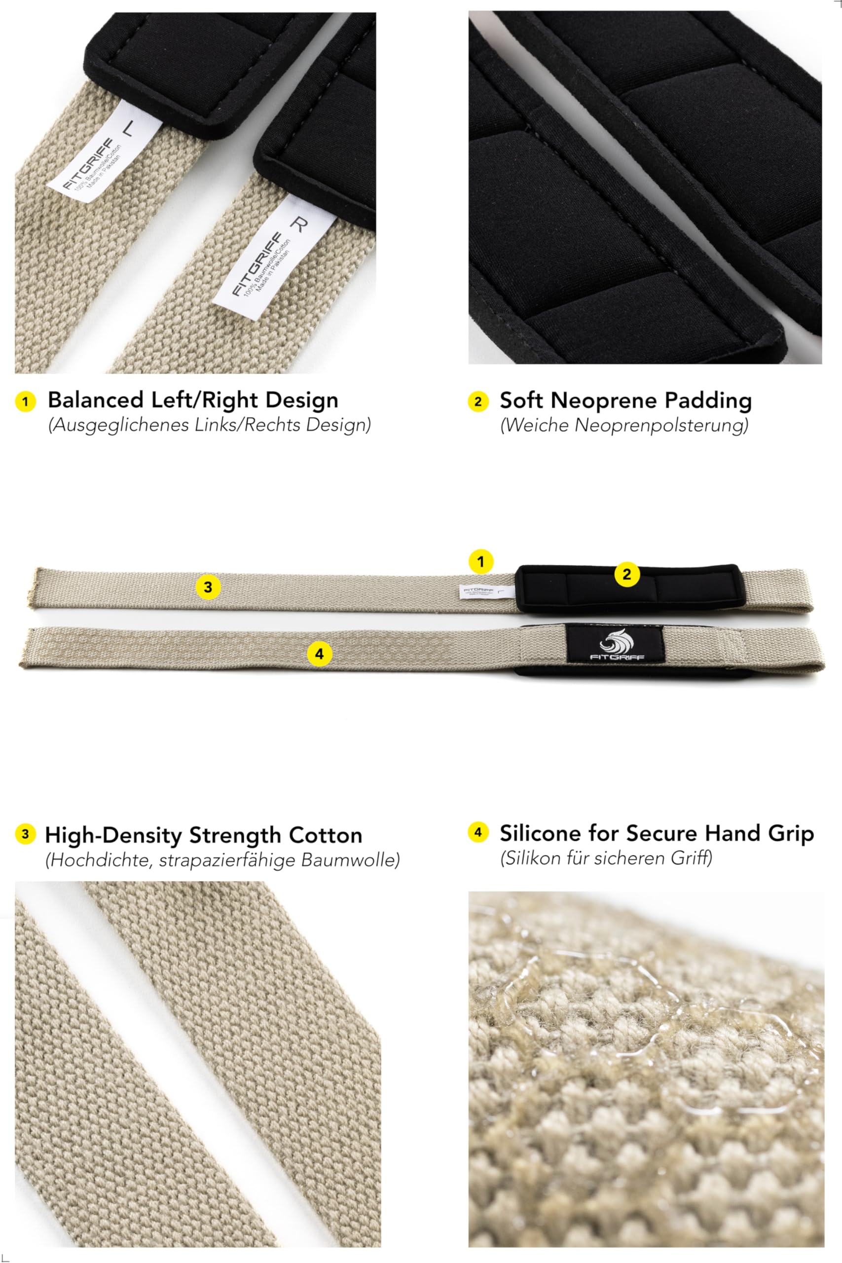 • ENGINEERED FOR ENDURANCE & COMFORT - Woven from dense pure cotton, these straps ensure durability and safety, complemented by neoprene wrist padding to prevent skin irritation and discomfort during the most intense workouts.