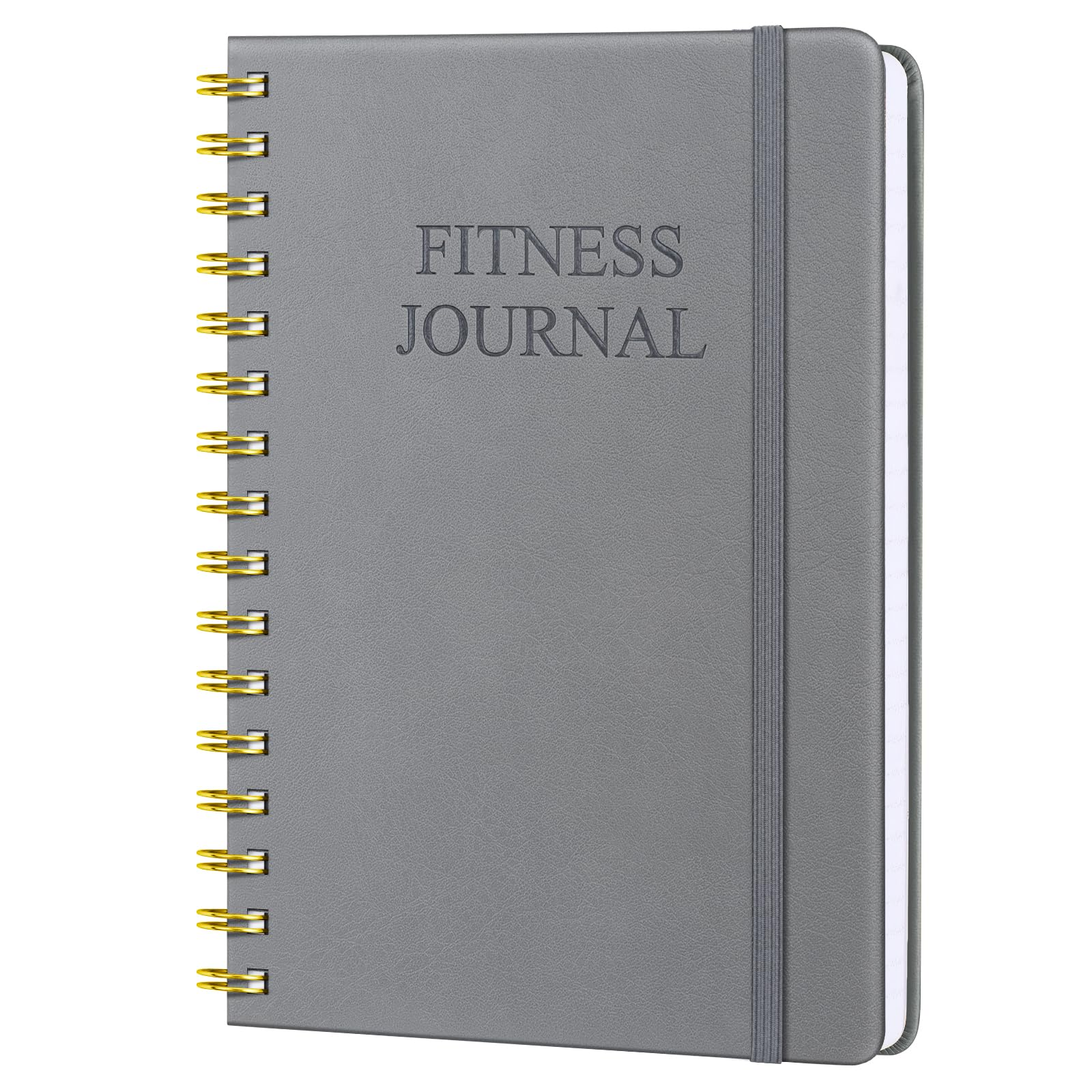 Fitness Journal-Workout Journal for Women & Men, Hard Cover Leather Fitness Planner, Workout Log Book With Gym Goals, Calendar, Progress Tracker, A5-5.7" x 8.3" - Grey