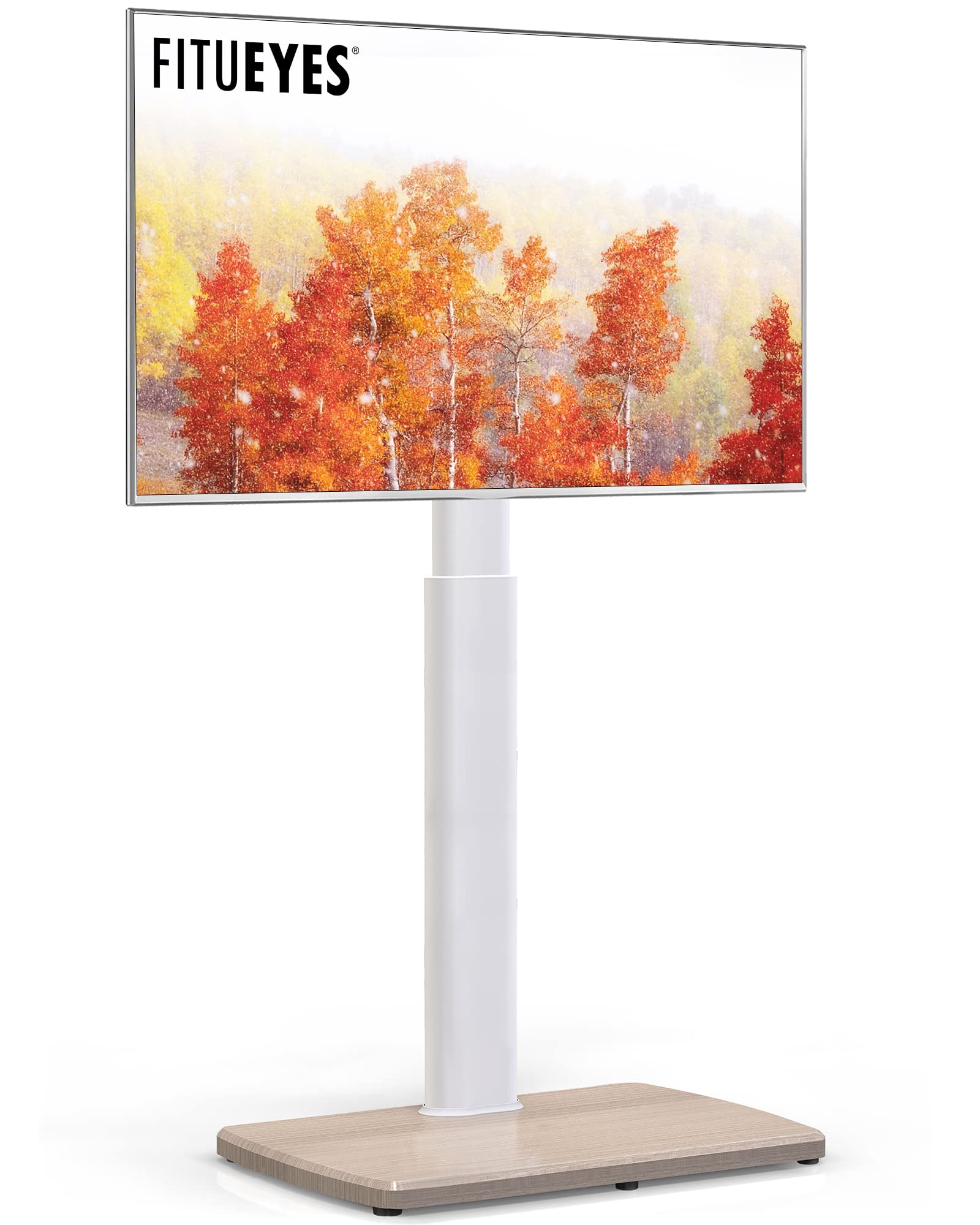FITUEYES Swivel Floor TV Stand for 32 to 70 Inch TVs Tall Universal TV Stand Mount with Sturdy Wood Base, Space Saving for Corner Bedroom White