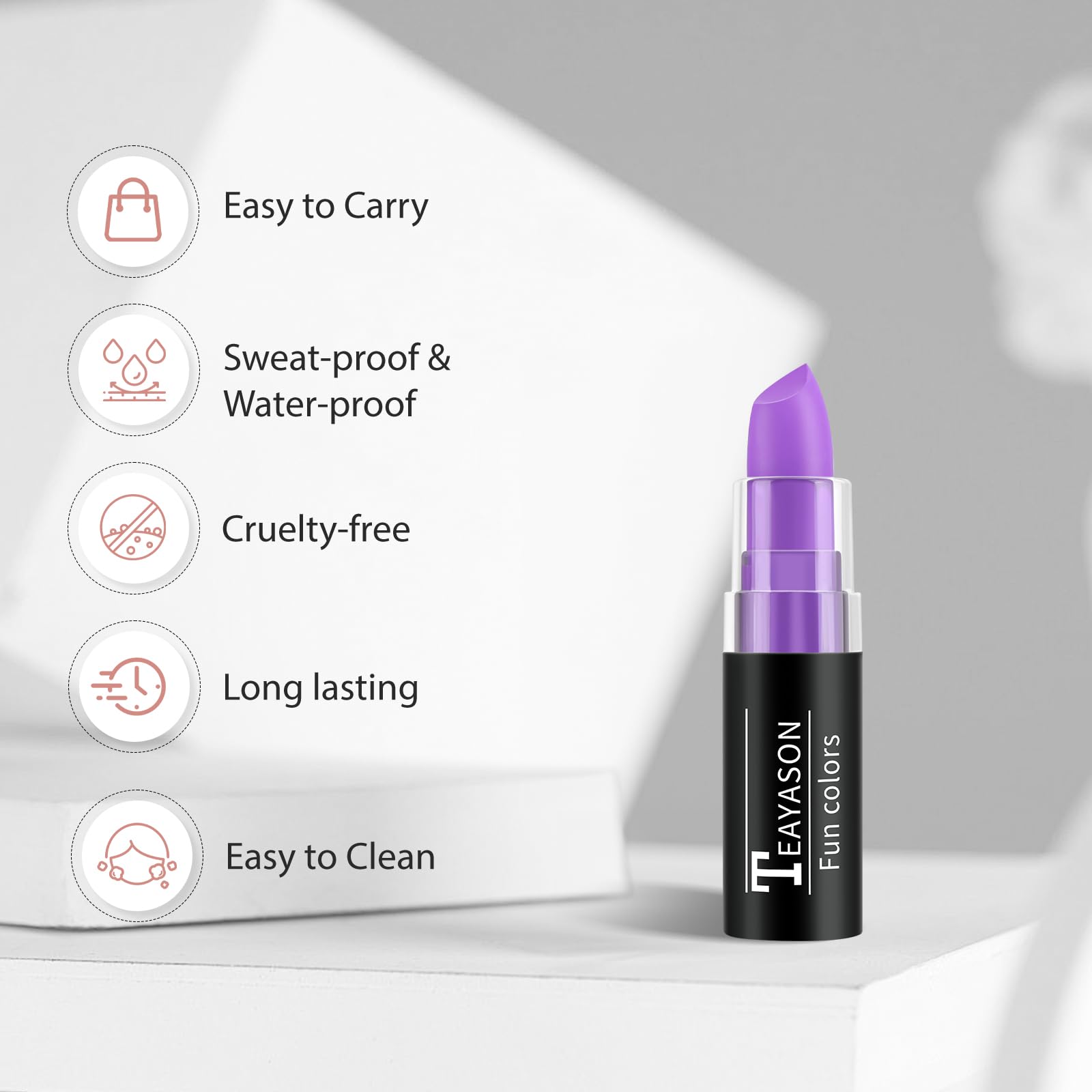 FIVEFULU Light Purple Face Body Paint Stick, Matte Light Purple Lipstick Eye Black Stick Face-Paint, Long Lasting Waterproof Purple Face Makeup for Halloween Ursula Witch Cheshire Cat Cosplay Makeup