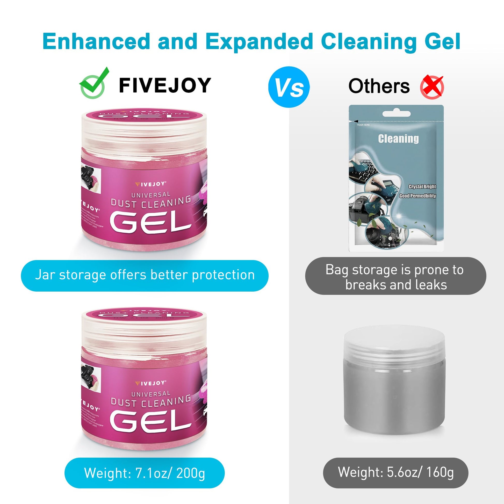- 200g Car Cleaning Gel: FiveJoy's powerful cleaning gel offers 200g of effective car cleaning putty, perfect for removing dust, dirt, and crumbs from car interiors, dashboards, vents, and hard-to-reach spaces.